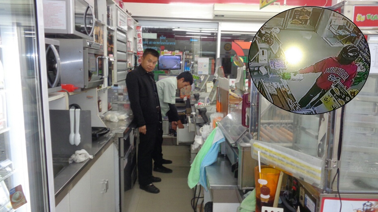 ที่เกิดเหตุ เจ้าหน้าที่ตำรวจพบพนักงานเซเว่นฯ ยืนรออยู่ จากนั้นได้ตรวจสอบกล้องวงจรปิดภายในร้าน พบว่าผู้ก่อเหตุเป็นชาย 1 คนสวมหมวกกันน็อกสีดำ ปิดบังใบหน้า สวมเสื้อแขนยาวสีแดง ใช้ผ้าปิดปากสีดำ สวมกางเกงขายาวสีดำ ใช้ยานพาหนะเป็นรถจักรยานยนต์ฮอนด้า เวฟ สีน้ำเงิน-ดำ ไม่ทราบทะเบียน ใช้อาวุธมีดจี้บังคับเอาทรัพย์สินจากพนักงาน เป็นเงินสด ชนิดเหรียญ และธนบัตรประมาณ 9,000 บาท หลบหนีไปทางแยกสะเมิงทางเข้าเมืองเชียงใหม่ จึงวิทยุสกัด แต่ไร้วี่แวว