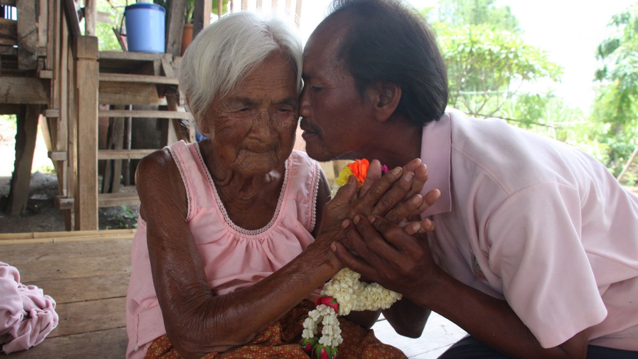 คุณยายอายุ 103 ปี สุขภาพยังดีมองเห็นแต่ไม่ค่อยได้ยิน ยังขึ้นลงบันไดเองได้ มีลูก 11 คน แต่ตายเหลือแค่ 2 คน ลูกชายคนเล็กอายุเกือบ 50 ปี ไม่เคยมอบพวงมาลัย ไม่เคยหอมแก้ม ไม่เคยบอกรักแม่ อาศัยวันแม่ปีนี้ทำทุกอย่าง
