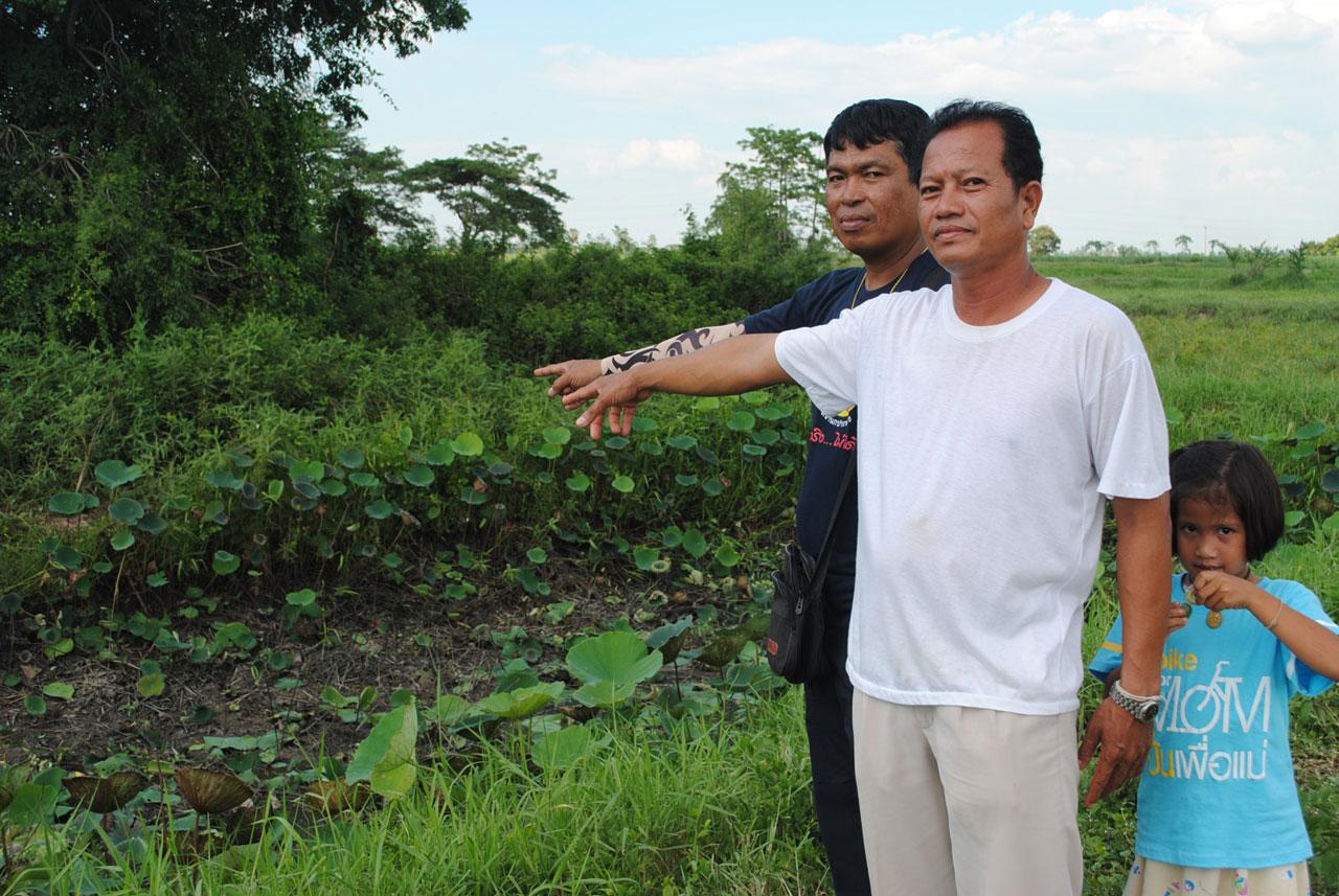 ขณะที่ นายสิทธิ เรืองวงค์ อายุ 47 ปี ชาวบ้าน ม.3 ต.คลองมะพลับ กล่าวว่า เมื่อคืนที่ผ่านมาประมาณ 4 ทุ่ม ชาวบ้านได้ออกมาดูที่สระบัวที่กำลัง สูบน้ำอยู่และพบจระเข้นอนอยู่ในกอบัว จึงได้ไปแจ้งแก่นายสุพจน์ แต่นายสุพจน์ บอกว่าจะมาจับจระเข้ในตอนเช้า จนเช้ากลับมาดูกลับไม่พบจระเข้ พบเพียงรอยจระเข้ได้คลานขึ้นมาจึงเดินดูบริเวณโดยรอบ พบเพียงขนนกปากห่างกอง อยู่บริเวณริมขอบสระจำนวนมาก.