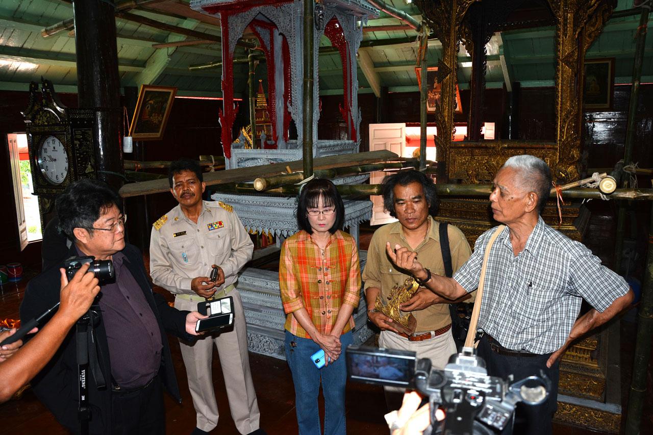 อ.ล้อม เพ็งแก้ว-ทองร่วง เอมโอษฐ์ พร้อมเจ้าหน้าที่ หน้าตาตื่นไปที่วัดเก่ากลางเมืองเพชร หลังเจ้าอาวาสจ้างช่างต่างถิ่นมารื้อ ‘ธรรมาสน์’ เก่าแก่เกือบ 100 ปี ฝีมือขุนศรีวังยศ ชี้ก่อความเสียหายในเชิงช่างศิลป์เมืองเพชรอย่างประเมินค่ามิได้...