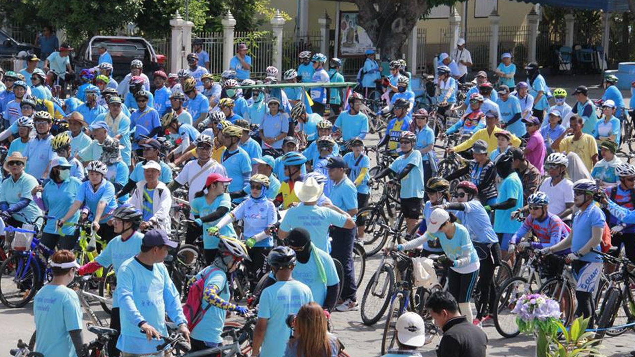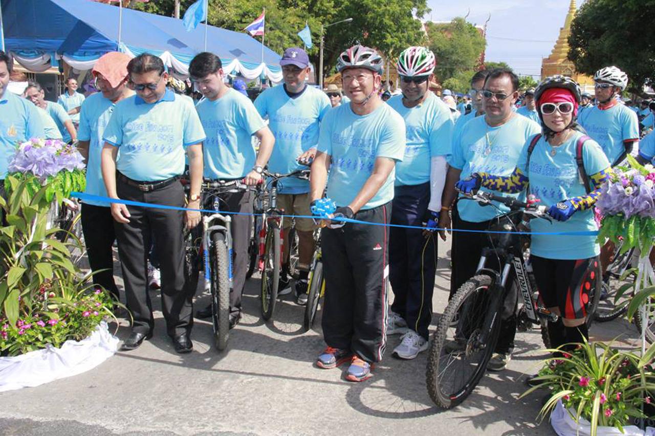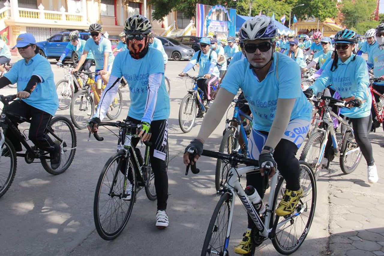 นายกเทศมนตรีเทศบาลเมืองสัตหีบ นำหัวหน้าส่วนราชการ ข้าราชการ และ ประชาชน จำนวนนับพันคน ร่วมใส่เสื้อสีฟ้า ปั่นจักรยาน ระยะทาง 15 กิโลเมตร เฉลิมพระเกียรติ 12 สิงหาคมมหาราชินี แสดงออกถึงความจงรักภักดี ณ วัดสัตหีบ จ.ชลบุรี...