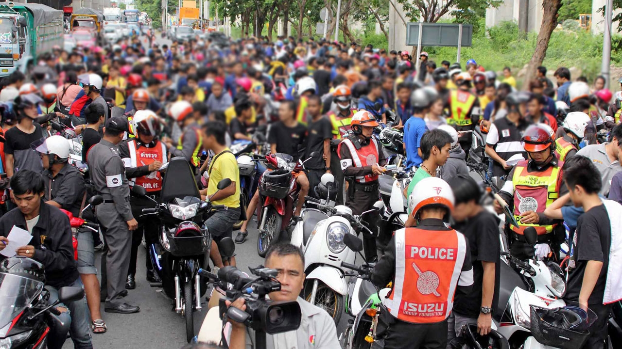 โจทก์ฟ้องว่า เมื่อวันที่ 9 ส.ค. จำเลยทั้ง 71 คน ขี่รถ จยย. มาพร้อมกับพวกประมาณ 1,000 คัน เป็นกลุ่มใหญ่ไปตามถนนวิภาวดีรังสิต ขาออก ด้วยความคึกคะนอง พร้อมเร่งเครื่องยนต์ส่งเสียงดัง เต็มทุกช่องทางจราจร โดยไม่คำนึงถึงความปลอดภัยของผู้อื่น ขอให้ศาลลงโทษสถานหนัก และริบของกลางรถ จยย. จำเลยทั้งหมดให้การรับสารภาพ ศาลพิพากษาว่าจำเลยทั้งหมดกระทำผิดตามฟ้อง ลงโทษลดหลั่นกันไปตามความผิดของแต่ละบุคคล โดยโทษสูงสุดให้จำคุก 2 เดือน ปรับ 3,000 บาท โทษจำคุกให้รอการลงโทษมีกำหนด 2 ปี ริบของกลางรถ จยย. ทันทีที่ศาลมีคำพิพากษา
