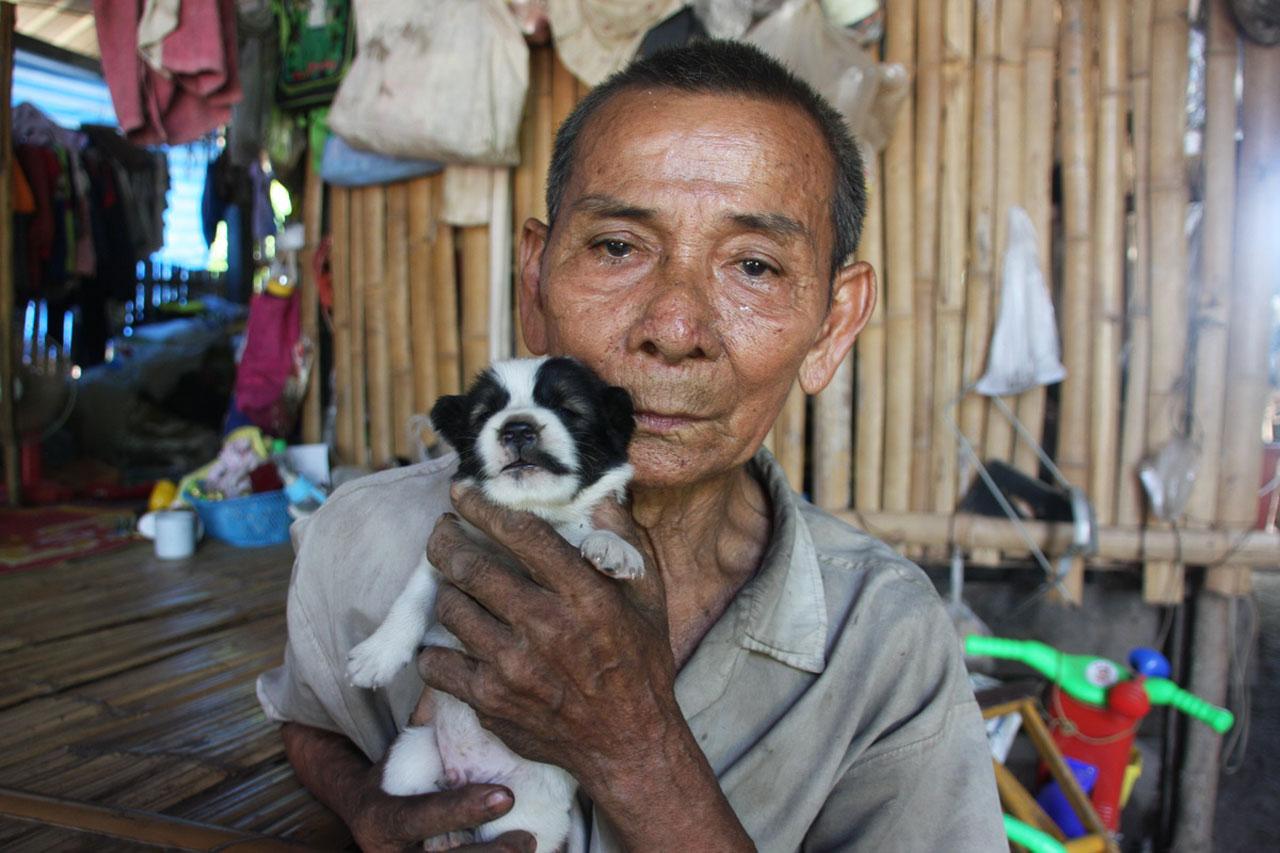 พ่อเฒ่าวัย 79 ปีที่กำแพงเพชร สำนึกในน้ำนม ‘แม่หมา’ ที่กินมาจนโต รอดชีวิตมาได้ หลังแม่แท้ๆ ป่วยไม่มีนมให้กิน ทุกวันนี้เลยเลี้ยงหมาทุกตัวอย่างดี ให้นอนในกระสอบกันยุง กินอาหารด้วยกัน และไม่โกรธหากใครจะด่าว่า ‘ลูกหมา’