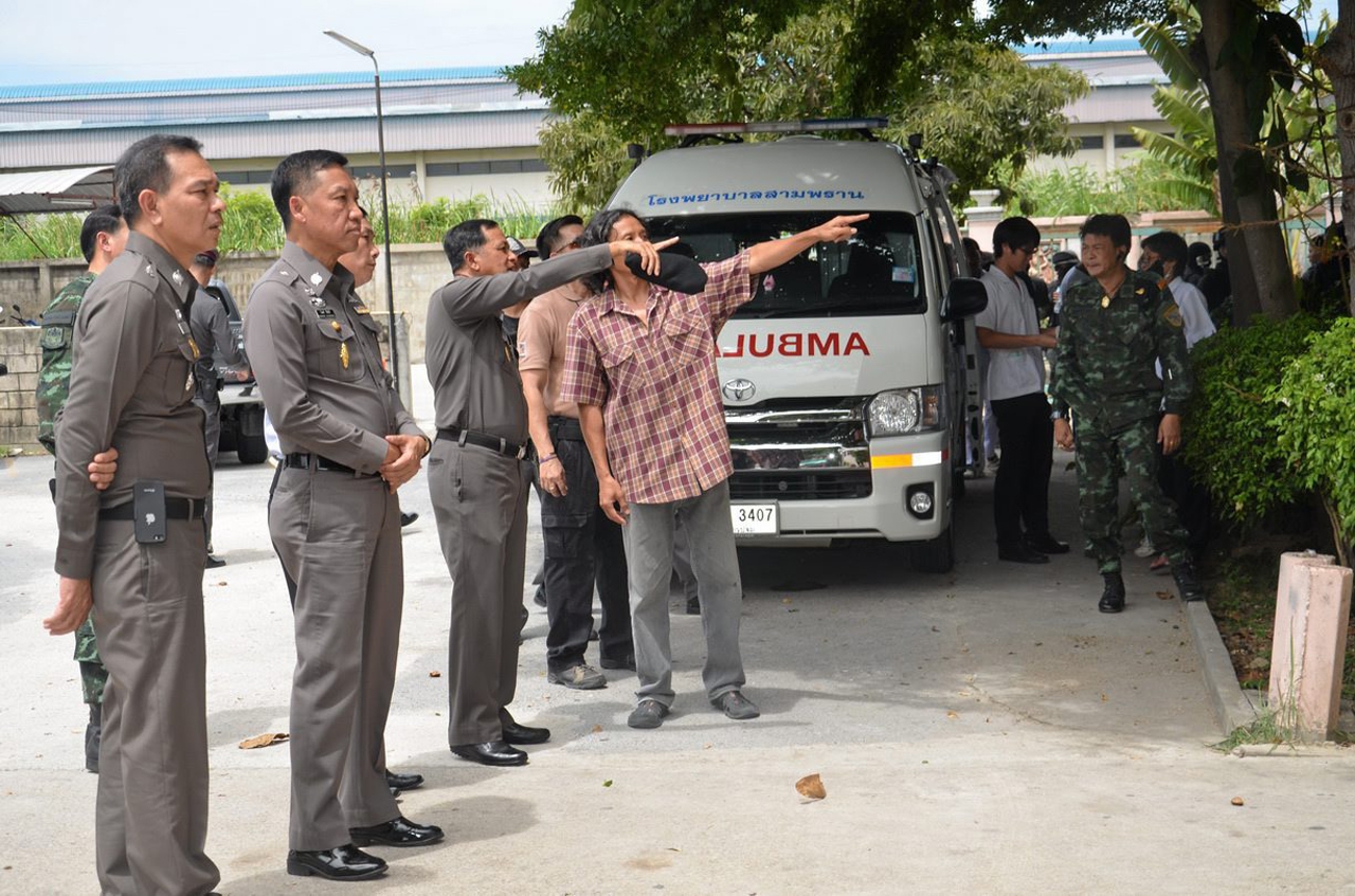 ที่เกิดเหตุเป็นอพาร์ตเมนต์ สูง 5 ชั้น ห้องที่เกิดเหตุหมายเลข 224 พบนายสยาม เทียมทอง อายุ 41 ปี ยืนกอดรัดเอวและใช้มีดจี้ลำคอ น.ส.นุช อายุ 20 ปี แฟนสาวชาวลาว โดยฝ่ายหญิงอยู่ในอาการตกใจกลัว เจ้าหน้าที่พยายามเกลี้ยกล่อมอยู่นานจนถึงรุ่งเช้านายสยามไม่ยอมปล่อยตัวประกัน ต่อมา พล.ต.ท.วีระพงษ์ ชื่นภักดี ผบช.ภ.7 ได้รับรายงานพร้อมด้วย พล.ต.ต.สุทธิพงษ์ วงษ์ปิ่น พล.ต.ต.สุรชัย ควรเตชะคุปต์ รอง ผบช.ภ.7 พล.ต.ต.ประภากร ริ้วทอง ผบก.สส.ภ.7 พล.ต.ต.พจน์ บุญมาภาคย์ ผบก.ภ.จ.นครปฐม พ.ต.อ.อุดม แก่นศักดิ์ ผกก.สส.ภ.จ.นครปฐม ร.อ.ภิญโญ ธวัชสุนทร ชุดประสานกองพันทหารช่างที่ 9 กาญจนบุรี เดินทางมาช่วยเจรจาแต่ไม่เป็นผล โดยนายสยามไม่ยอมปล่อยตัวประกันพร้อมพูดขู่หากตำรวจบุกเข้าจับกุมจะปาดคอทำร้ายตัวประกัน