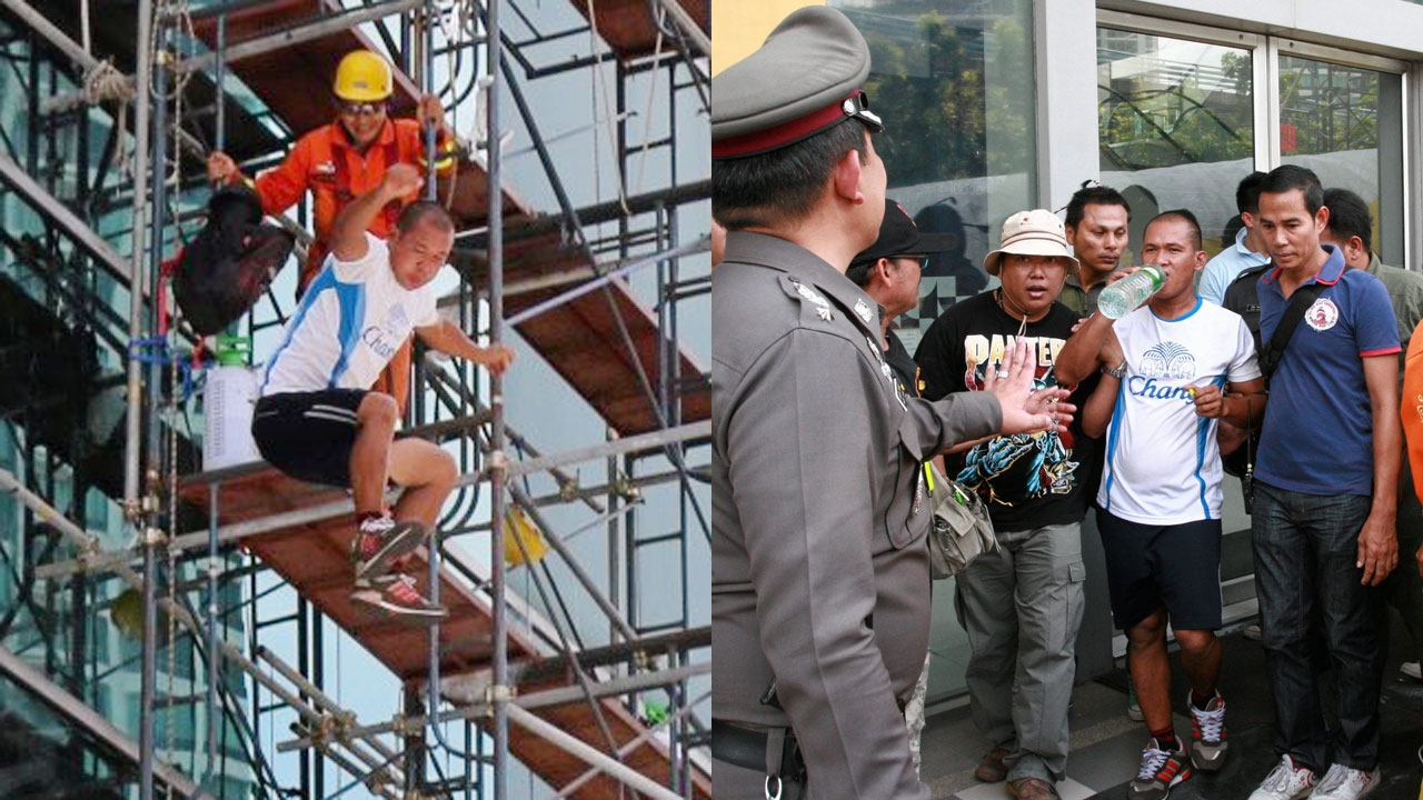 นายปฐวี ธนพิบูลย์ศิริ หนุ่มช่างไฟ ปีนขึ้นไปอยู่บนนั่งร้านด้านหน้าอาคาร ธ.ไทยพาณิชย์ ภายในเอสซีบีปาร์ค ถ.รัชดาภิเษก แล้วกระโดดลงใส่เบาะลมไม่ได้รับบาดเจ็บ สาเหตุน้อยใจแฟนสาว เจ้าหน้าที่เอาน้ำให้ดื่มเพื่อสงบสติอารมณ์ แล้วให้แฟนสาวที่มาเกลี้ยกล่อมพากลับบ้าน.