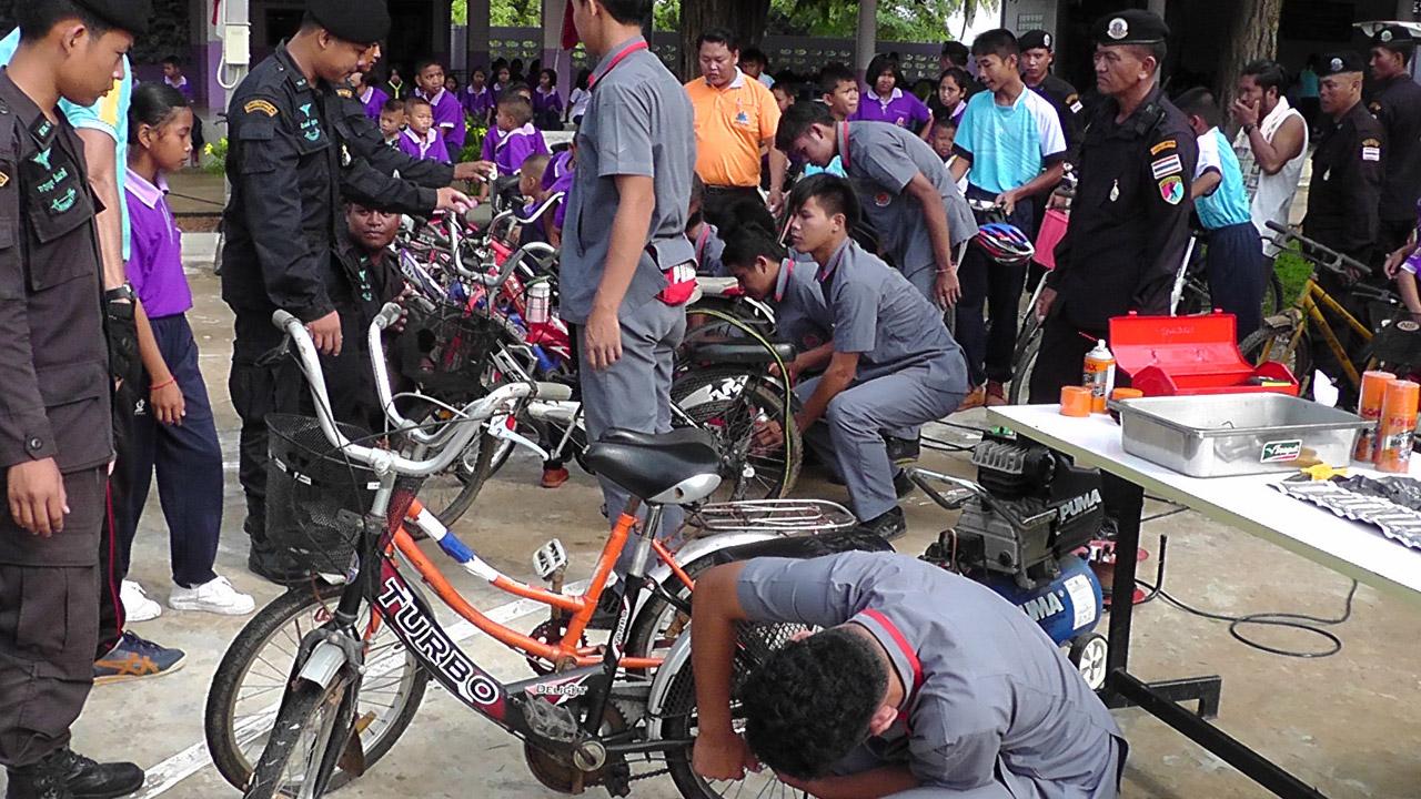 โดยมีเด็กนักเรียนและประชาชนไทยบริเวณชายแดน เกือบ 300 คน นำรถจักรยานสองล้อ มาให้นักศึกษาวิทยาลัยเทคนิคสระแก้ว และช่างซ่อมรถจักรยานจากหน่วยเฉพาะกิจกรมทหารพรานที่ 12 ทำการตรวจสภาพรถและซ่อมให้สามารถใช้งานได้อย่างปกติ