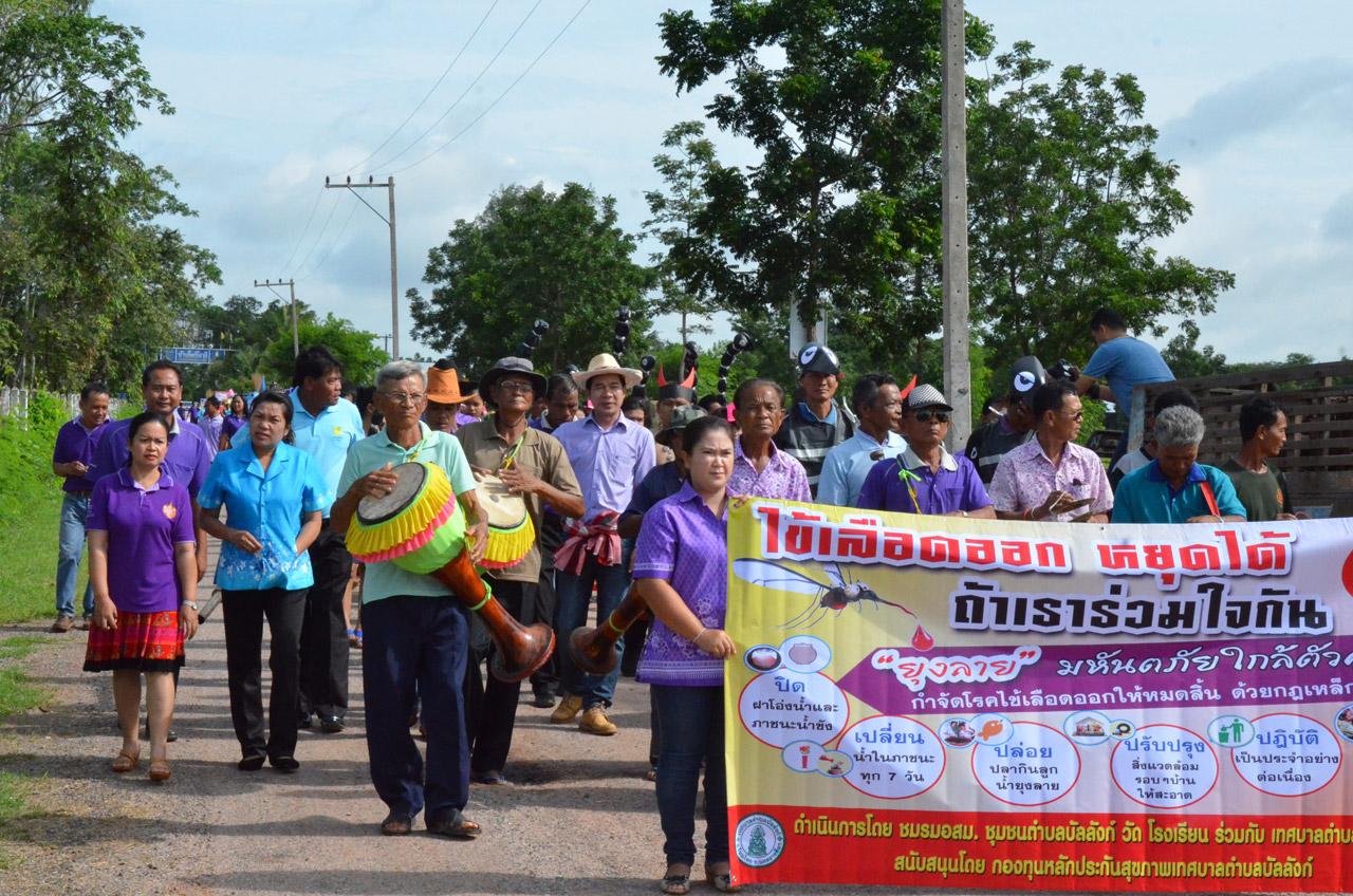 เมื่อวันที่ 13 ส.ค. 58 ที่เทศบาลตำบลบัลลังก์ อ.โนนไทย จ.นครราชสีมา นายศุภเศรษฐ์ น้อยศรี สาธารณสุขอำเภอโนนไทย เป็นประธานเปิดโครงการรวมพลังคนบัลลังก์ ต้านภัยไข้เลือดออก เพื่อเฝ้าระวังและควบคุมการแพร่ระบาดของโรคไข้เลือดออก โดยมี ร.ต.ฐนนท์ธรณ์ กวีกิจรัตนา นายกเทศมนตรีตำบลบัลลังก์ นำประชาชน นักเรียน ในพื้นที่กว่า 300 คน ร่วมเดินรณรงค์