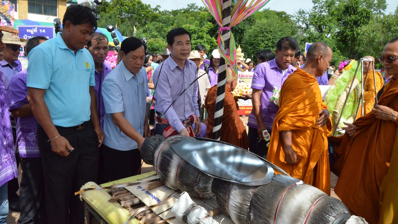 เทศบาลตำบลบัลลังก์ จ.นครราชสีมา นิมนต์พระจัดสวดศพยุงลายจำลอง ก่อนนำเผาบนเชิงตะกอนโบราณ เพื่อรณรงค์ต้านไข้เลือดออก ...