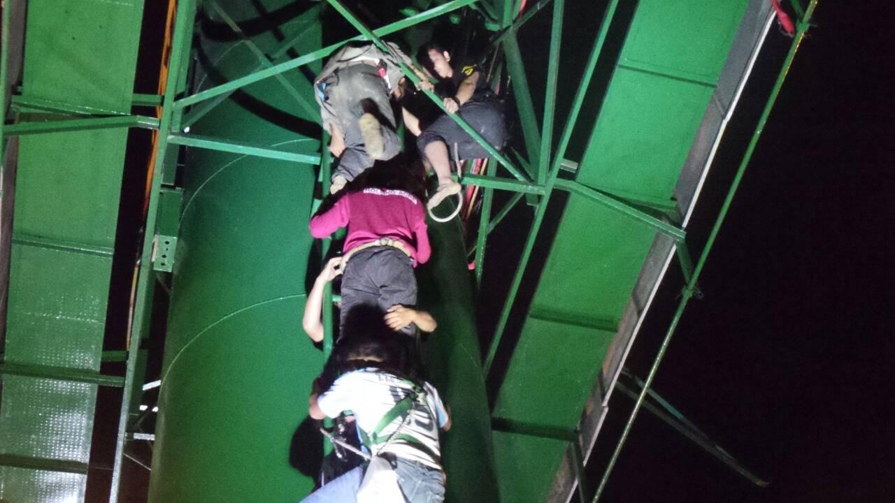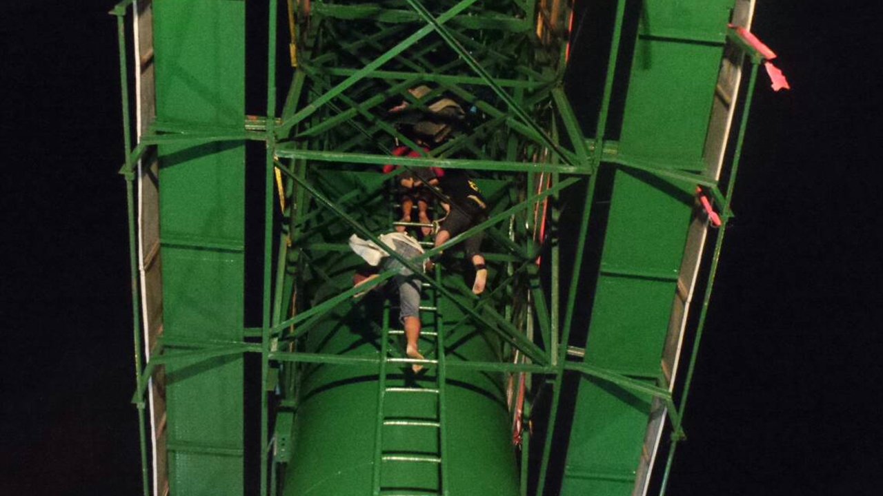 จากการสอบถามชาวบ้าน ทราบว่า ชายคนดังกล่าว ปีนบันได ขึ้นไปนั่งตั้งแต่เวลา 17.30 น. เรียกให้ลงก็ไม่ลงแถมไม่พูดจา คิดว่า น่าจะเป็นโรคประสาท จึงแจ้งให้ ตร.มาเกลี้ยกล่อมช่วยให้ลง