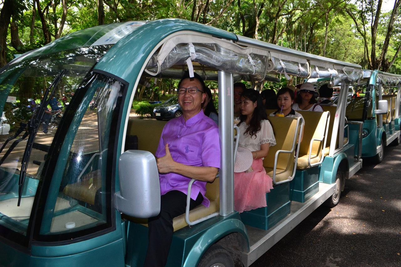 "มหาวิทยาลัยเชียงใหม่ ให้บริการรถไฟฟ้านำเที่ยวสายสีเขียว รอบมหาวิทยาลัยฯ ระยะทางประมาณ 6.5 กิโลเมตร ใช้เวลาประมาณ 30 นาที พาไปตระเวนตามคณะต่างๆ และจอดแวะที่อ่างเก็บน้ำอ่างแก้ว ประมาณ 15 นาที ให้นักท่องเที่ยวถ่ายภาพ คิดค่าบริการ คนละ 60 บาท เปิดให้บริการ มานานประมาณ 1 ปี 2 เดือน มีนักท่องเที่ยวมากกว่า 1 แสนคน และมีการมอบป้ายในวันนี้ เพื่อเป็นการส่งเสริมการท่องเที่ยว และสร้างความประทับใจ ให้กับนักท่องเที่ยว ซึ่งนักท่องเที่ยว มีทุกเพศทุกวัย ซึ่งมหาวิทยาลัยเชียงใหม่ จะเป็นแหล่งท่องเที่ยวยอดนิยมอันดับ 3 ของนักท่องเที่ยวจีน อันดับแรกไปไหว้พระวัดพระธาตุดอยสุเทพ ลงมาแวะสวนสัตว์เชียงใหม่ และมาเที่ยวต่อที่มหาวิทยาลัยเชียงใหม่" ผู้ช่วยอธิการบดี ฝ่ายสื่อสารองค์กรฯ มหาวิทยาลัยเชียงใหม่ กล่าว.