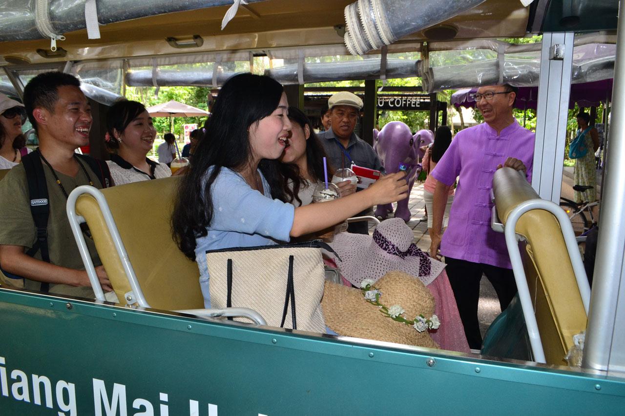 นายธีรภัทร กล่าวว่า อย่างไรก็ตาม หลังมีการจัดระเบียบของนักท่องเที่ยวจีนที่เข้ามาเที่ยวในมหาวิทยาลัยเชียงใหม่ เพื่อให้เป็นระเบียบมากขึ้น โดยจัดรถไฟฟ้าพร้อมไกด์นักศึกษาพานักท่องเที่ยวเข้าชมภายในมหาวิทยาลัยเชียงใหม่ ตามจุดต่างๆ ซึ่งแต่ละวันก็จะมีนักท่องเที่ยวชาวจีน เดินทางเข้ามาท่องเที่ยว วันละกว่า 500 คน หากเป็นเทศกาลประมาณวันละ 1 พันคน