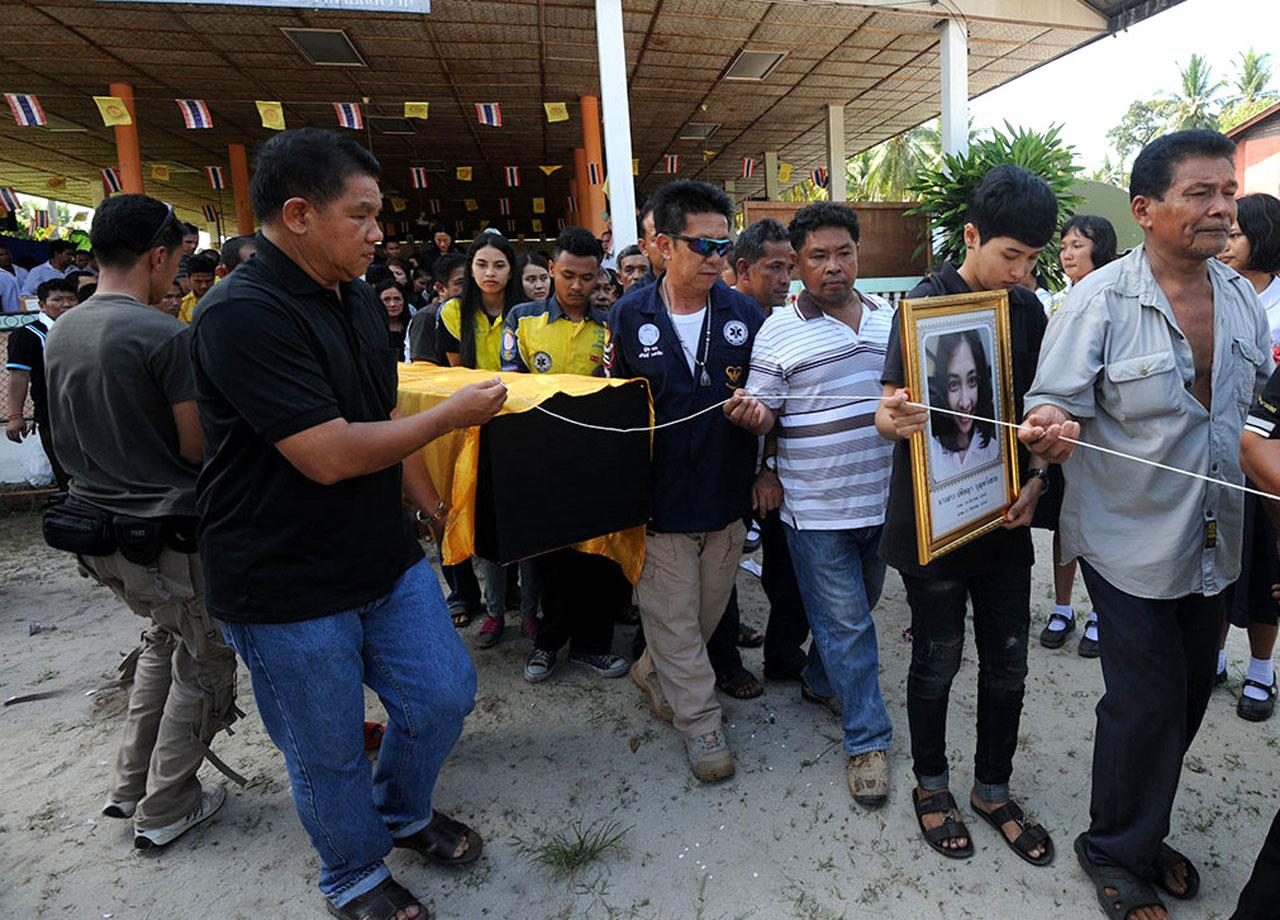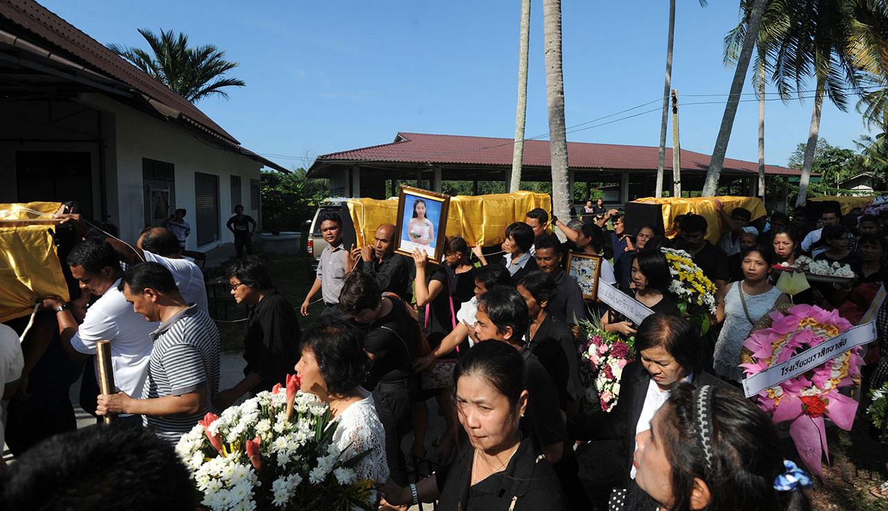 ทั้งนี้ ศพนักเรียนที่ประกอบพิธีในวันนี้ ประกอบด้วย 1. ด.ญ.สุนิสา สุวรรณพงษ์ 2. ด.ญ.บริมาศ แดงเงิน 3. ด.ญ.บุญธิดา ฉาฉ่ำ 4. น.ส.ศิรตา หิรัญวงศ์ 5. ด.ช.ภานุพัฒน์ บุญหวังช่วย 6. น.ส.ปพิชญา บุญหวังช่วย และ 7. นายเมธิชัย มณีโรจน์ โดยในพิธีมีนายจำนัล เหมือนดำ รอง ผวจ.นราธิวาส ตลอดจนเพื่อนนักเรียน ครู และญาติกว่า 1,000 คนเข้าร่วม