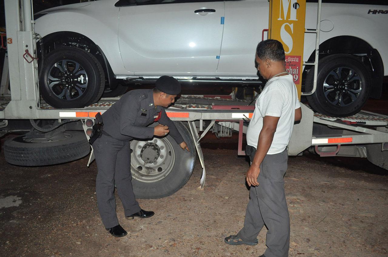 ห่างกันเล็กน้อย พบนายสมศักดิ์ แก่นอาสา อายุ 34 ปี คนขับรถจักรยานยนต์คนดังกล่าว อยู่บ้านเลขที่ 96/1 หมู่ 7 ตำบลนาขา อ.หลังสวน ได้รับบาดเจ็บสาหัส หน่วยกู้ภัยนำส่งโรงพยาบาลหลังสวน ในที่เกิดเหตุยังพบรถจักรยานยนต์ สีแดงดำ ป้ายแดงหมายเลขทะเบียน 01 1254 สภ.เกาะจันทร์ ได้รับความเสียหาย และพบรถกระบะโตโยต้า สีเขียว หมายเลขทะเบียน 4572 ชุมพร มีนาย หัสชัย จันทอง อายุ 40 ปี อยู่บ้านเลขที่127/2 หมู่3 ตำบลปังหวาน อ.พะโต๊ะ เป็นคนขับ สภาพหน้ารถด้านขวาเสียหายเล็กน้อย ห่างจากที่เกิดเหตุประมาณ 1 กม. พบรถ 18 ล้อ สีขาวหมายเลขทะเบียน 61 7158 กรุงเทพ มีนายนิกร แก้วฆ้องวงษ์ อายุ 31ปี อยู่บ้านเลขที่ 20/1 หมู่ที่ 2 ตำบลยางราก อ.โคกเจริญ จ.ลพบุรี เป็นคนขับ ที่ล้อรถพบเลือดเศษชิ้นส่วนของมนุษย์ติดอยู่เจ้าหน้าที่จึงเชิญตัวไปสอบสวน