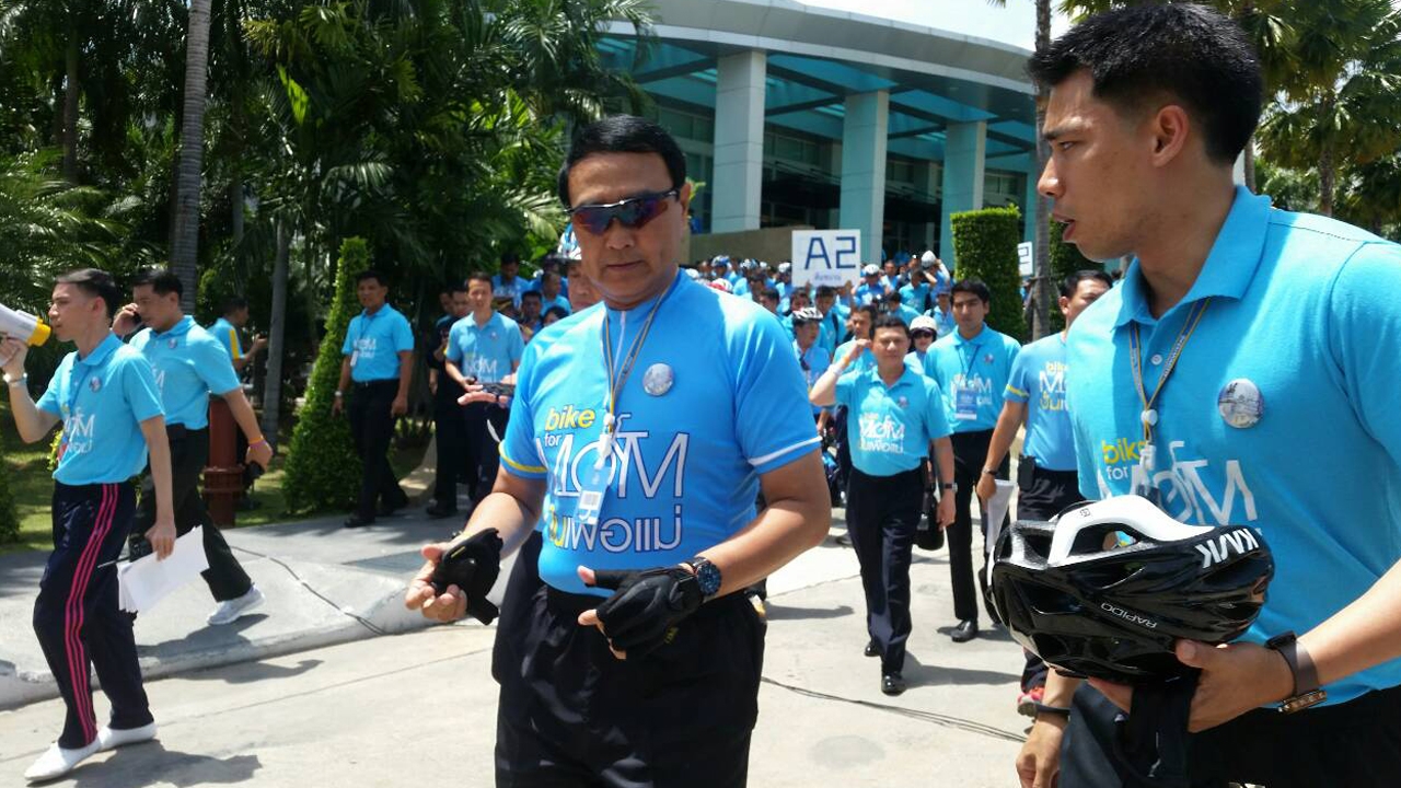 ผู้สื่อข่าวรายงานว่า เมื่อเวลา 13.30 น. บรรยากาศ ที่หอประชุมกองทัพภาคที่ 1 ซึ่งเป็นจุดลงทะเบียนของข้าราชการชั้นผู้ใหญ่ระดับสูง ที่นำโดยพลเอกอุดมเดช สีตบุตร รัฐมนตรีช่วยว่าการกระทรวงกลาโหม และ ผู้บัญชาการทหารบก พลเอกศิริชัย ดิษฐกุล ปลัดกระทรวงกลาโหม พลเอกวรพงษ์ สง่าเนตร ผู้บัญชาการทหารสูงสุด พลอากาศเอก ตรีทศ สนแจ้ง ผู้บัญชาการทหารอากาศ พลเรือเอกไกรสร จันทร์สุวานิชย์ ผู้บัญชาการทหารเรือ และพลตำรวจเอก สมยศ พุ่มพันธุ์ม่วง ผู้บัญชาการตำรวจแห่งชาติ พลเอกอักษรา เกิดผล ประธานคณะที่ปรึกษากองทัพบก พลเอกปรีชา จันทร์โอชา ผู้ช่วยผู้บัญชาการทหารบก เป็นต้น ทั้งนี้ได้ถ่ายภาพหมู่ร่วมกัน โดยแต่ละคน ได้แต่งกายด้วยชุดปั่นจักรยานและสวมใส่เสื้อสีฟ้า พร้อมจักรยานคู่ใจมาร่วมปั่นในกิจกรรม Bike for Mom ปั่นเพื่อแม่ ในครั้งนี้ด้วย
