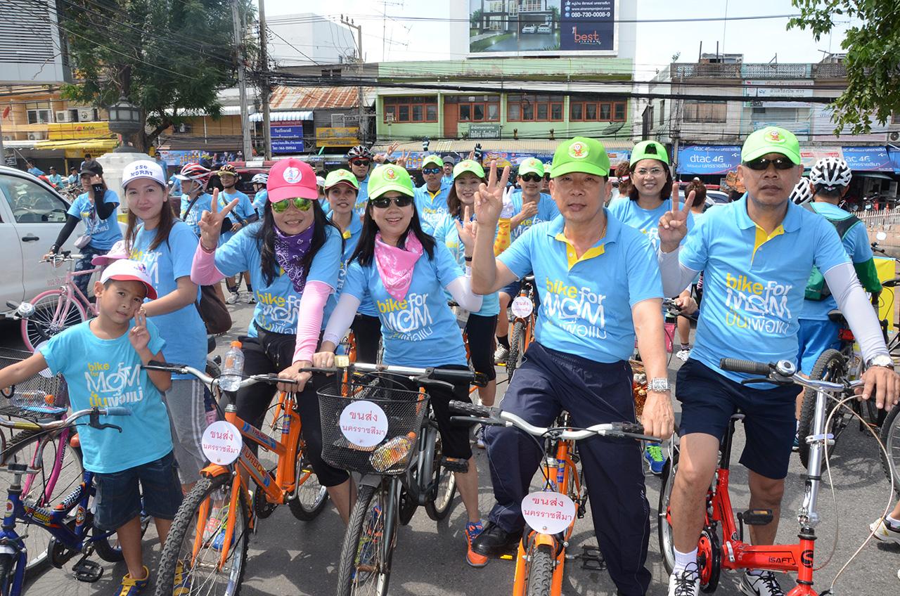 เมื่อเวลา 15.09 น. วันที่ 16 ส.ค. 58 ที่จุดสตาร์ต บริเวณหน้าศาลากลางจังหวัดนครราชสีมา นายสุวัจน์ ลิปตพัลลภ อดีตรองนายกรัฐมนตรี พร้อมด้วย พล.ท.ธวัช สุกปลั่ง แม่ทัพภาคที่ 2 นายธงชัย ลืออดุลย์ ผวจ.นครราชสีมา พล.ต.ท.พิสัณห์ จุลดิลก ผู้บัญชาการตำรวจภูธรภาค 3 ข้าราชการ พนักงานวิสาหกิจ พ่อค้า นักธุรกิจ พี่น้องประชาชนชาวจังหวัดนครราชสีมาทุกสาขาอาชีพทุกวัยจำนวนนับหมื่นคน ได้ร่วมกันปั่นจักรยานในกิจกรรม ‘Bike for Mom ปั่นเพื่อแม่’ โดยมีแขก วีไอพี อาทิ พล.ท.หญิงพูนภิรมย์ ลิปตพัลลภ อดีต รมว.พลังงาน นายสุรวุฒิ เชิดชัย นายกเทศมนตรีนครนครราชสีมา นางยลดา หวังศุภกิจโกศล ชมรมทูบีนัมเบอร์วัน อ.เสิงสาง จ.นครราชสีมา เป็นต้น