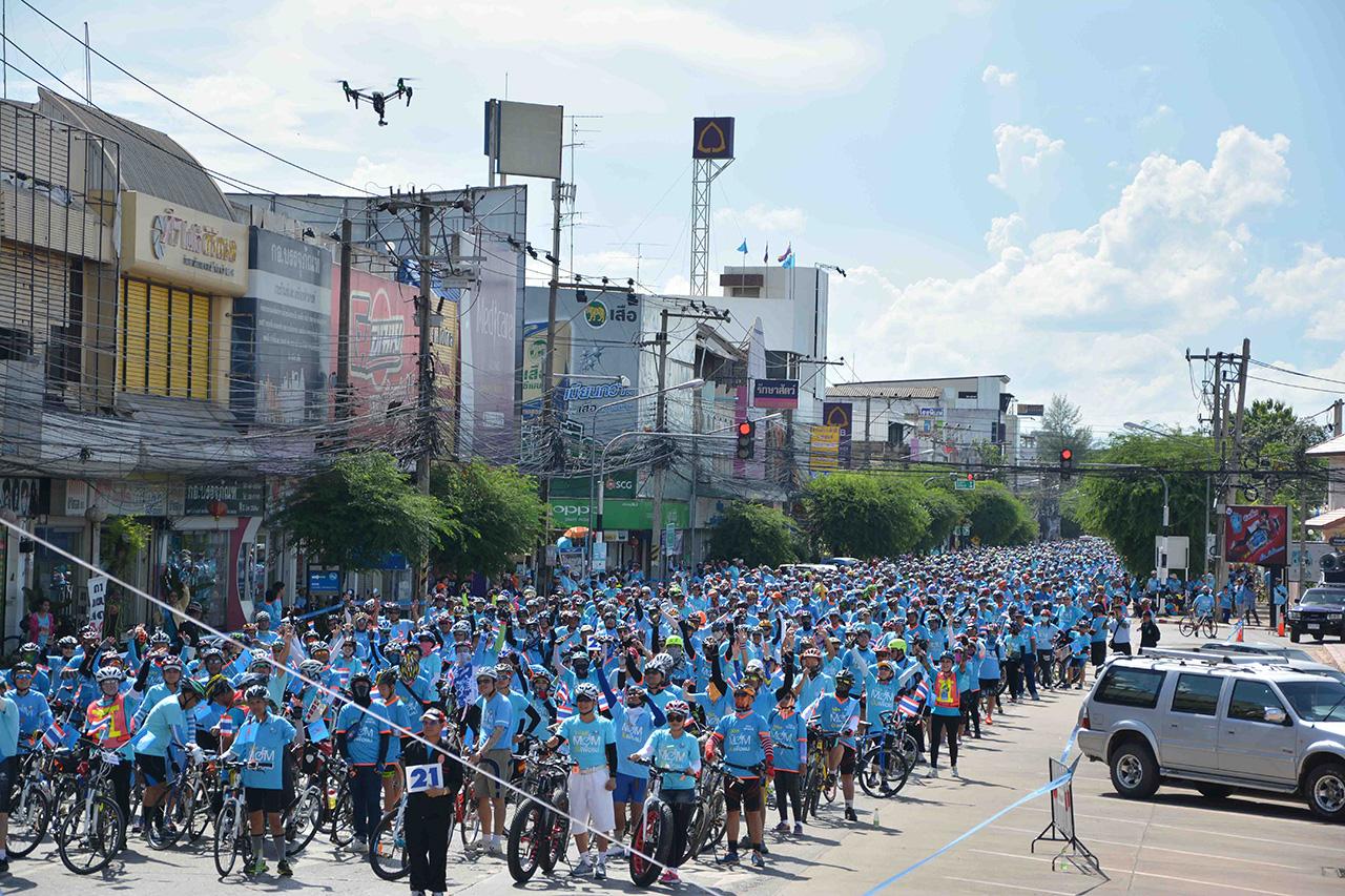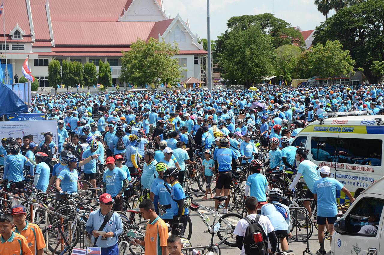 แม้ว่าสภาพอากาศแดดจะร้อน แต่ทุกคนก็ไม่ย่อท้อต่ออากาศร้อน และไม่เป็นอุปสรรคในการปั่นเพื่อแม่ในครั้งนี้ เมื่อขึ้นบนอานจักรยานได้ก็ยกมือชูสองนิ้ว โดยเส้นทางปั่นเริ่มต้นจากบริเวณสนามหน้าศาลากลางจังหวัดนครราชสีมา ปั่นออกไปผ่านหน้าอนุสาวรีย์ท้าวสุรนารี (คุณย่าโม) มุ่งหน้าเข้าสู่ถนนมิตรภาพไปตามทางผ่านหน้าห้างสรรพสินค้าเดอะมอลล์นครราชสีมา แล้วเข้าจุดสแกนบาร์โค้ดเพื่อบันทึกสถิติลงในกินเนสส์บุ๊ก บริเวณโค้งวัดโคกพรหม ใต้สะพานลอยถนนมิตรภาพก่อนถึงแยกอัมพวัน ซึ่ง จ.นครราชสีมา มีนักปั่นเข้าร่วมสแกนบาร์โค้ดบันทึกสถิติ จำนวน 2,000 คน จากจำนวนนักปั่นที่เข้าร่วมลงทะเบียนจำนวน 7,168 คน ก่อนที่ขบวนนักปั่นทั้งหมดจะปั่นไปตามเส้นทางแล้วเลี้ยวซ้ายเข้าสู่ถนนสาย 304 นครราชสีมา-ปักธงชัย เมื่อไปถึงบริเวณหน้าสนามกีฬาเฉลิมพระเกียรติ 80 พรรษา ก็เลี้ยวซ้ายเข้าสู่กองบิน 1 ปั่นกลับเข้าไปยังสนามหน้าศาลากลางจังหวัดนครราชสีมา รวมระยะทางการปั่นจักรยานทั้งหมดประมาณ 29 กิโลเมตร เป็นไปด้วยความเรียบร้อยทุกอย่าง