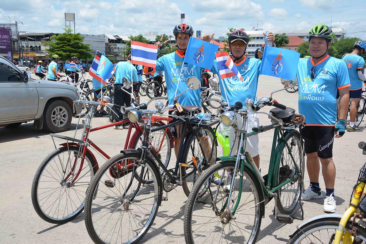 จากนั้นเวลา 15.39 น. ที่ถนนอธิบดี หน้าศาลากลางจังหวัดอุดรธานี ซึ่งเป็นจุดเริ่มต้น Bike for Mom ปั่นเพื่อแม่ ไม่บันทึกสถิติโลก นายณรงค์ พลละเอียด รอง ผวจ.อุดรธานี รักษาราชการแทน ผวจ.อุดรธานี ได้นำข้าราชการ ทหาร ตำรวจ ประชาชน จำนวน 2,187 คน ปั่นออกจากจุดเริ่มต้น เพื่อเทิดพระเกียรติสมเด็จพระนางเจ้าฯ พระบรมราชินีนาถ ไปตามเส้นทางในเขตเทศบาลนครอุดรธานี เป็นระยะทาง 26.5 กิโลเมตร แม้ว่าอากาศจะร้อนอบอ้าว แต่นักปั่นทุกคนไม่ย่อท้อ มีสีหน้ายิ้มแย้มแจ่มใส และไม่มีนักปั่นเป็นลมหรือเจ็บป่วย ต่างถ้อยทีถ้อยอาศัยกัน ช่วยเหลือซึ่งกันและกัน