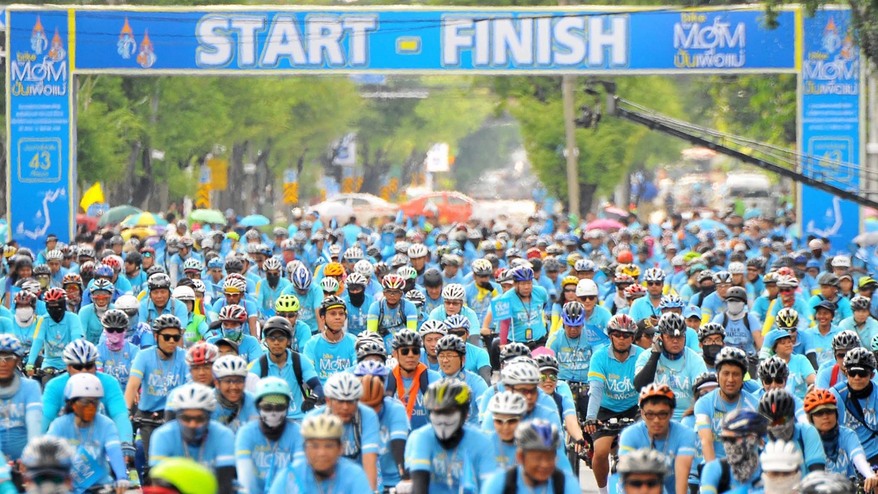 บรรยากาศความคึกคักเนืองแน่นที่จุดเริ่มต้น ณ พระลานพระราชวังดุสิต กทม.ที่นักปั่นจักรยานในชุดเสื้อสีฟ้าพากันพร้อมใจปั่นจักรยานร่วมกิจกรรมเฉลิมพระเกียรติ สมเด็จพระนางเจ้าฯ พระบรมราชินีนาถ “Bike for Mom ปั่นเพื่อแม่” กันอย่างพร้อมเพรียง และปั่นไปจนถึงกรมทหารราบที่ 11 รอ.ก่อนวนกลับมาจุดเดิม รวมระยะ 43 กม.