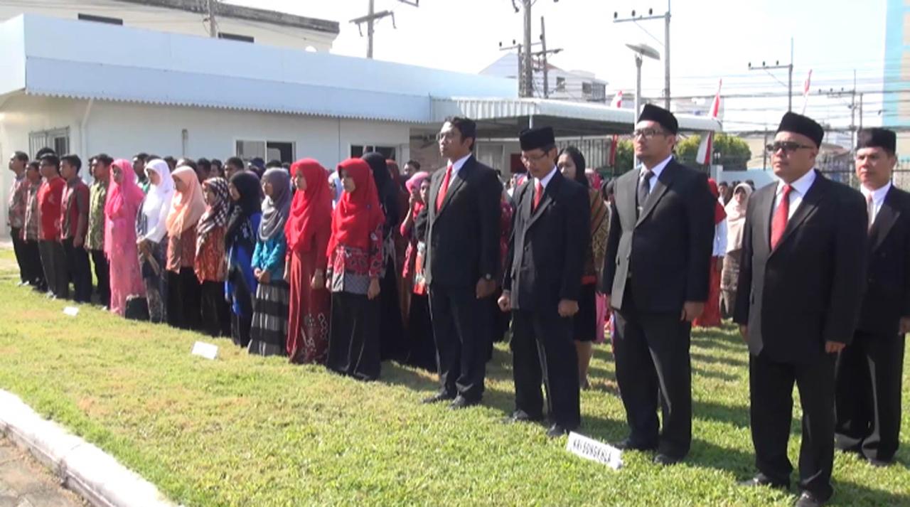 สำหรับปีนี้ มีนักศึกษาที่เป็นครูฝึกงานชาวอินโดนีเซีย จำนวน 170 คน และเป็นครูสอนอยู่ในโรงเรียนเอกชนสอนศาสนาอิสลาม ในพื้นที่ภาคใต้ตอนล่าง ตั้งแต่จังหวัดภูเก็ตไปจนถึงจังหวัดนราธิวาส ทั้งหมดได้เดินทางมาร่วมงานในวันนี้ และร่วมกันประสานเสียงร้องเพลงชาติอินโดนีเซีย