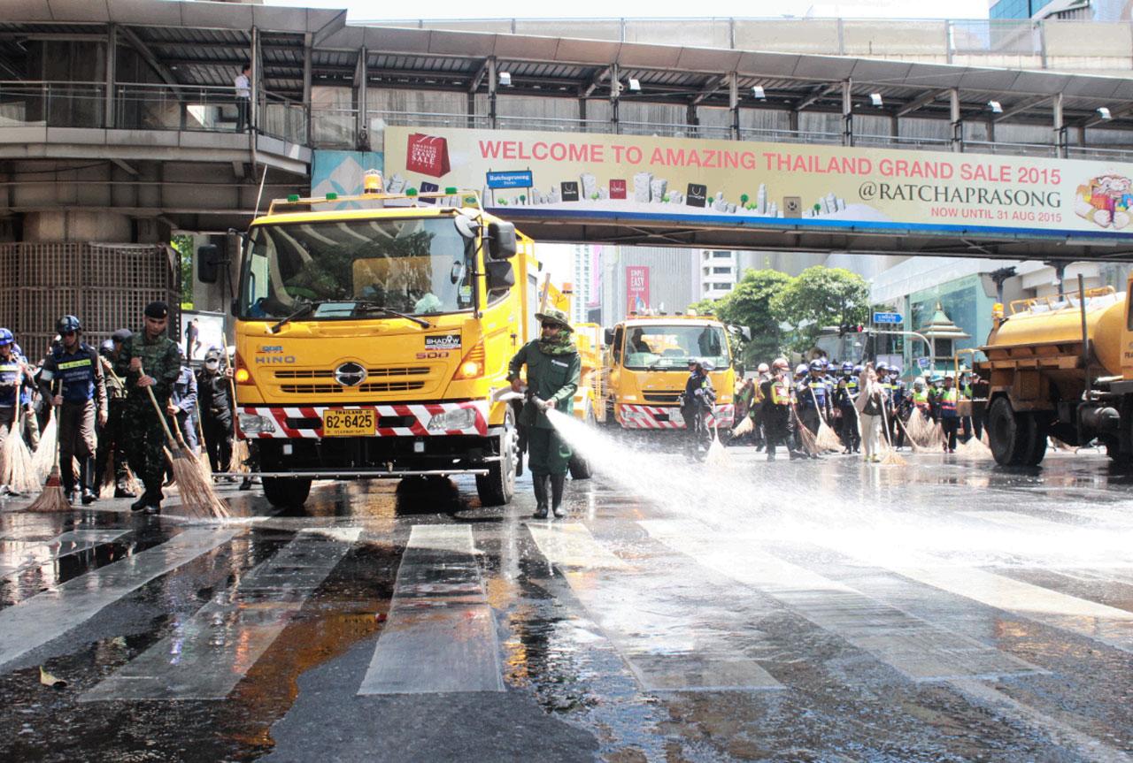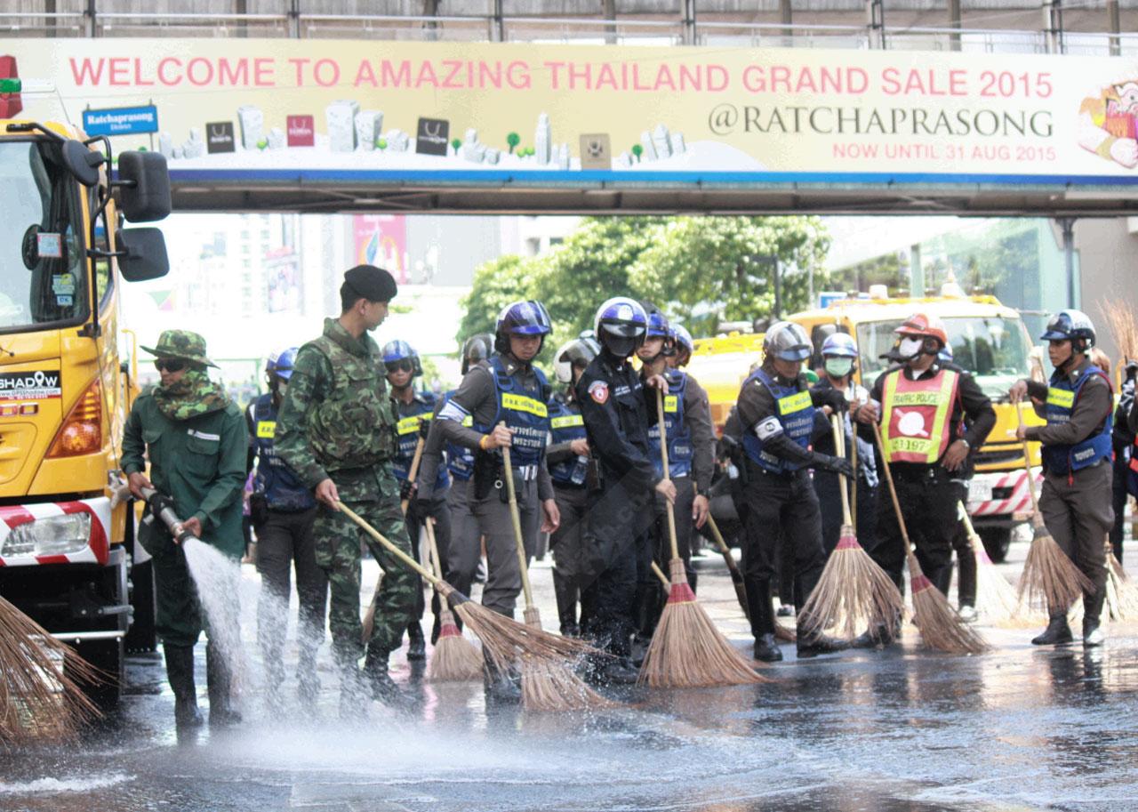 โดยเมื่อช่วงเช้าวันนี้ เจ้าหน้าที่ชุดอีโอดี เจ้าหน้าที่พิสูจน์หลักฐาน ได้เข้าเคลียร์พื้นที่ พร้อมเก็บพยานในที่เกิดเหตุเพิ่มเติม ท่ามกลางการรักษาความปลอดภัยอย่างเข้มงวด มีการกั้นพื้นที่ ไม่ให้ผู้ไม่มีส่วนเกี่ยวข้องเข้า ก่อนที่จะให้เจ้าหน้าที่ กทม. ร่วมกันทำความสะอาดถนน ก่อนเปิดการจราจรเป็นปกติอีกครั้ง แต่ยังมีการกั้นพื้นที่บริเวณหน้าศาลพระพรหมเอราวัณไว้