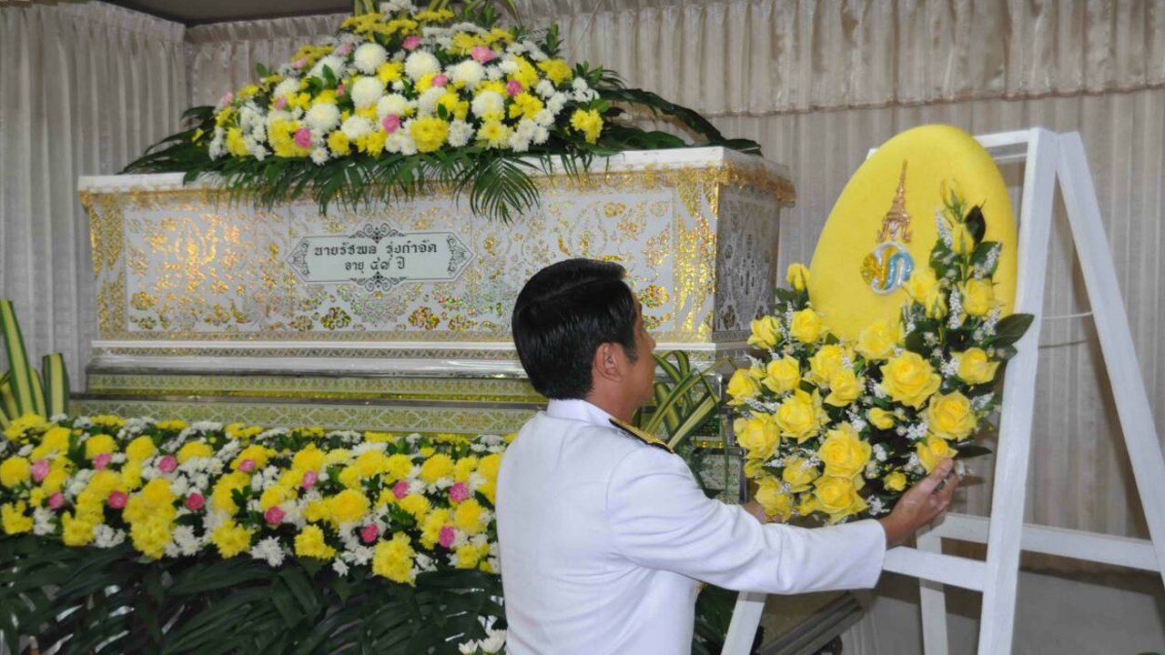 สมเด็จพระบรมโอรสาธิราชฯ ทรงพระกรุณาโปรดเกล้าฯ ให้ผู้แทนพระองค์เชิญพวงมาลาพระราชทานวางหน้าหีบศพนายรัชพล รุ่งกำจัด ช่างโยธา กรมทางหลวง ที่เสียชีวิตเนื่องจากอาการเป็นลม ขณะเข้าร่วมกิจกรรมปั่นเพื่อแม่ของจ.นครศรีธรรมราช...