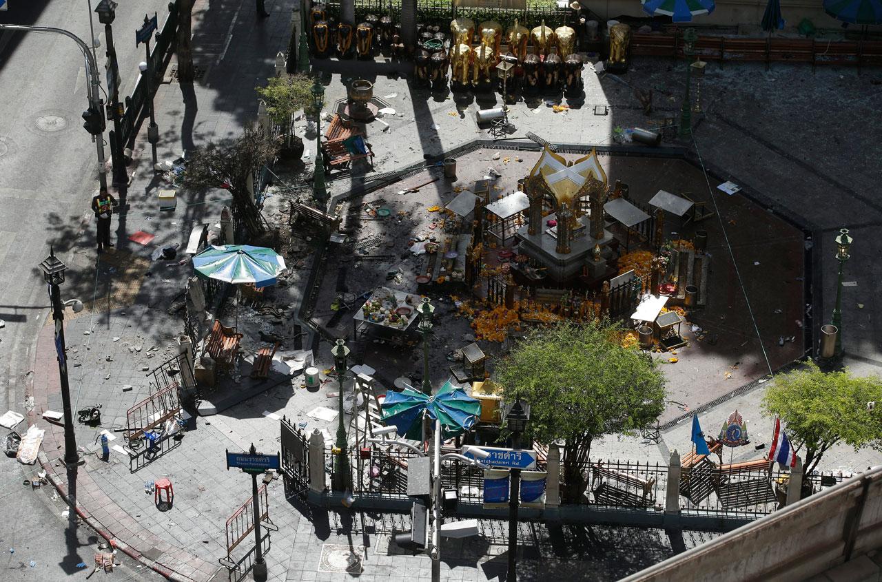 เกี่ยวกับเรื่องนี้ เมื่อตอนบ่ายวันที่ 18 ส.ค. ที่สำนักงานตำรวจแห่งชาติ พล.ต.ท.ประวุฒิ ถาวรศิริ ผู้ช่วย ผบ.ตร. และโฆษกสำนักงานตำรวจแห่งชาติ ได้เผยแพร่ภาพชายต้องสงสัยที่กล้องวงจรปิดบริเวณศาลท้าวมหาพรหมจับภาพได้ ลักษณะคล้ายชาวต่างชาติ ผิวขาว รูปร่างผอมสูง รูปหน้าคล้ายชาวตะวันตก ผมหยิกสีน้ำตาล สวมแว่นตากรอบดำ สวมเสื้อยืดสีเหลือง กางเกงสามส่วนสีเข้ม สวมรองเท้าผ้าใบ สวมปลอกแขน นาฬิกาข้อมือสีดำ สะพายเป้สีน้ำเงิน มือถือถุง 1 ใบ แต่ภาพต่อมากระเป๋าเป้หายไป
