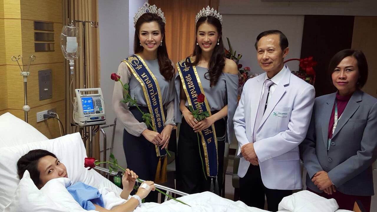 คณะนางสาวไทย ประจำปี 2557 เข้าเยี่ยมผู้บาดเจ็บชาวจีน 2 คน และชาวไทยรวม 4 คน จากเหตุระเบิดที่แยกราชประสงค์ ที่ รพ.พญาไท 1 โดยชาวจีนขวัญเสียบอกจะไม่เที่ยวเมืองไทย ด้านรองนางสาวไทยต้องปลอบและวอนขอให้กลับมาอีกครั้ง...