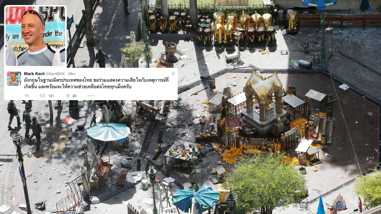 ทูตอังกฤษประจำไทย ทวิตเตอร์ ขอแสดงความเสียใจ เหตุระเบิดแยกราชประสงค์ ยัน อังกฤษในฐานะมิตรประเทศของไทย พร้อมให้ความช่วยเหลือไทยทุกเมื่อ