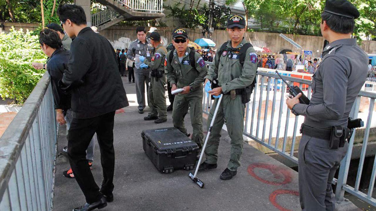 วงจรปิดใต้สะพานสมเด็จพระเจ้าตากสิน จับภาพขณะเกิดระเบิดขึ้นเสียงดังสนั่นหวั่นไหวผืนน้ำกระจาย หลังคนร้ายหย่อนระเบิดลงมาจากบนสะพานกะถล่มโป๊ะสาทร โชคดีไม่มีผู้ได้รับบาดเจ็บหรือเสียชีวิต