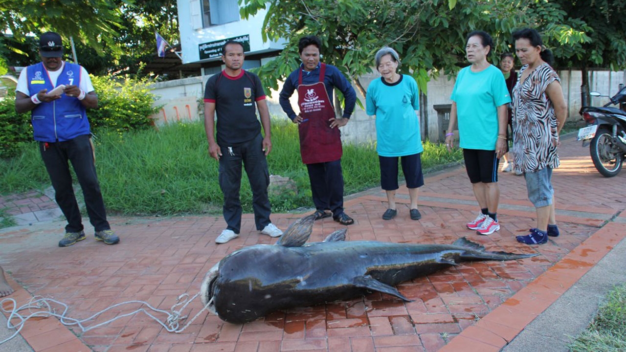 พรานล่าปลาที่บุรีรัมย์ ใช้ปืนลูกดอกยิงปลาบึกขนาดใหญ่ น้ำหนักร่วม 200 กก. ถูกปล่อยเลี้ยงไว้ในคลองละลมโบราณ เจาะเข้ากลางหลังจนปลายักษ์ทนไม่ไหวลอยเกยตื้น และตายในที่สุด หน.เทศกิจบอก ตัวนี้เป็นตัวที่ 3 แล้ว ที่พบถูกยิงตาย...