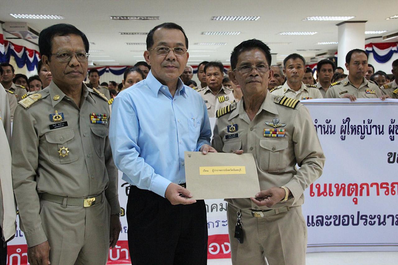 นายกิจวัตร สวาสดิ์ นายกสมาคมกำนัน-ผู้ใหญ่บ้าน จ.จันทบุรี เป็นตัวแทนกำนัน-ผู้ใหญ่บ้าน มอบหนังสือกับทางจังหวัด โดยมีนายกล้าณรงค์ พงษ์เจริญ รอง ผวจ.จันทบุรี นายโสภณ เนื่องจำนงค์ นอภ.เมืองจันทบุรี เป็นผู้แทนรับมอบหนังสือผ่านไปยังนายกรัฐมนตรี และรัฐบาล ในการเร่งติดตามตัว ผู้ที่ก่อเหตุความรุนแรงขึ้นในครั้งนี้