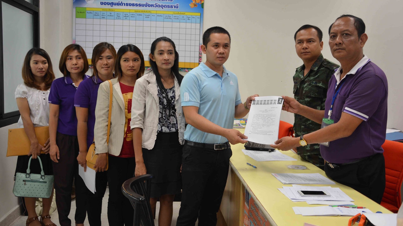 วันที่ 19 ส.ค. 58 ที่ศูนย์ดำรงธรรมจังหวัดอุดรธานี น.ส.ปุณณรัตน์ โพธิตา อายุ 37 ปี และ นายธีรพงษ์ กิติราช อายุ 30 ปี ลูกจ้างเหมาจ่ายของสำนักงาน กศน. อ.กุมภวาปี พร้อมพวกรวมจำนวน 6 คน เดินทางเข้ายื่นร้องเรียนต่อศูนย์ดำรงธรรมจังหวัดอุดรธานี หลังไม่ได้รับค่าจ้างเป็นเวลา 7 เดือน โดยมีนายกฤษณ์ชานนท์ อุทัยเลี้ยง หัวหน้าศูนย์ดำรงธรรมจังหวัดอุดรธานี เป็นผู้รับหนังสือร้องเรียน