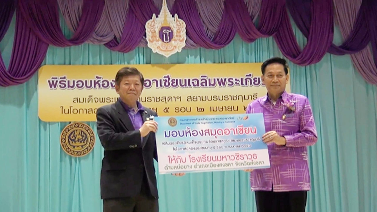 นายธวัชชัยเปิดเผยอีกว่า กรมเจรจาการค้าระหว่างประเทศ กระทรวงพาณิชย์ ในฐานะหน่วยงานหลักในการประสานงานด้านประชาคมเศรษฐกิจอาเซียน ได้เล็งเห็นถึงความสำคัญดังกล่าว ในปี 2558 จึงได้เริ่มดำเนินการโครงการห้องสมุดอาเซียนเฉลิมพระเกียรติสมเด็จพระเทพรัตนราชสุดาฯ สยามบรมราชกุมารี ในสถาบันการศึกษาระดับมัธยมศึกษารวม 10 แห่ง โดยให้ความสำคัญจังหวัดที่อยู่บริเวณแนวพื้นที่พัฒนาเศรษฐกิจและเขตเศรษฐกิจพิเศษ หรือเมืองหน้าด่าน ที่เชื่อมโยงไปยังภาคอื่นๆ เพื่อให้เป็นแหล่งเรียนรู้เกี่ยวกับอาเซียนและการเป็นประชาคมเศรษฐกิจอาเซียนของโรงเรียนและของชุมชนใกล้เคียง มีแนวคิดนำเสนอผ่านมุมนิทรรศการที่แสดงวิวัฒนาการของอาเซียน ข้อมูลพื้นฐานของประเทศสมาชิก ที่ผ่านมาได้ส่งมอบห้องสมุดอาเซียนเฉลิมพระเกียรติฯไปแล้ว 8 จังหวัด ในวันนี้ได้มอบห้องสมุดอาเซียนเฉลิมพระเกียรติฯให้แก่ ร.ร.มหาวชิราวุธสงขลาเป็นจังหวัดที่ 9 และจังหวัดที่ 10 คือ จ.นครราชสีมาและจะทำพิธีมอบให้แล้วเสร็จภายในเดือน ส.ค.นี้เช่นเดียวกัน.