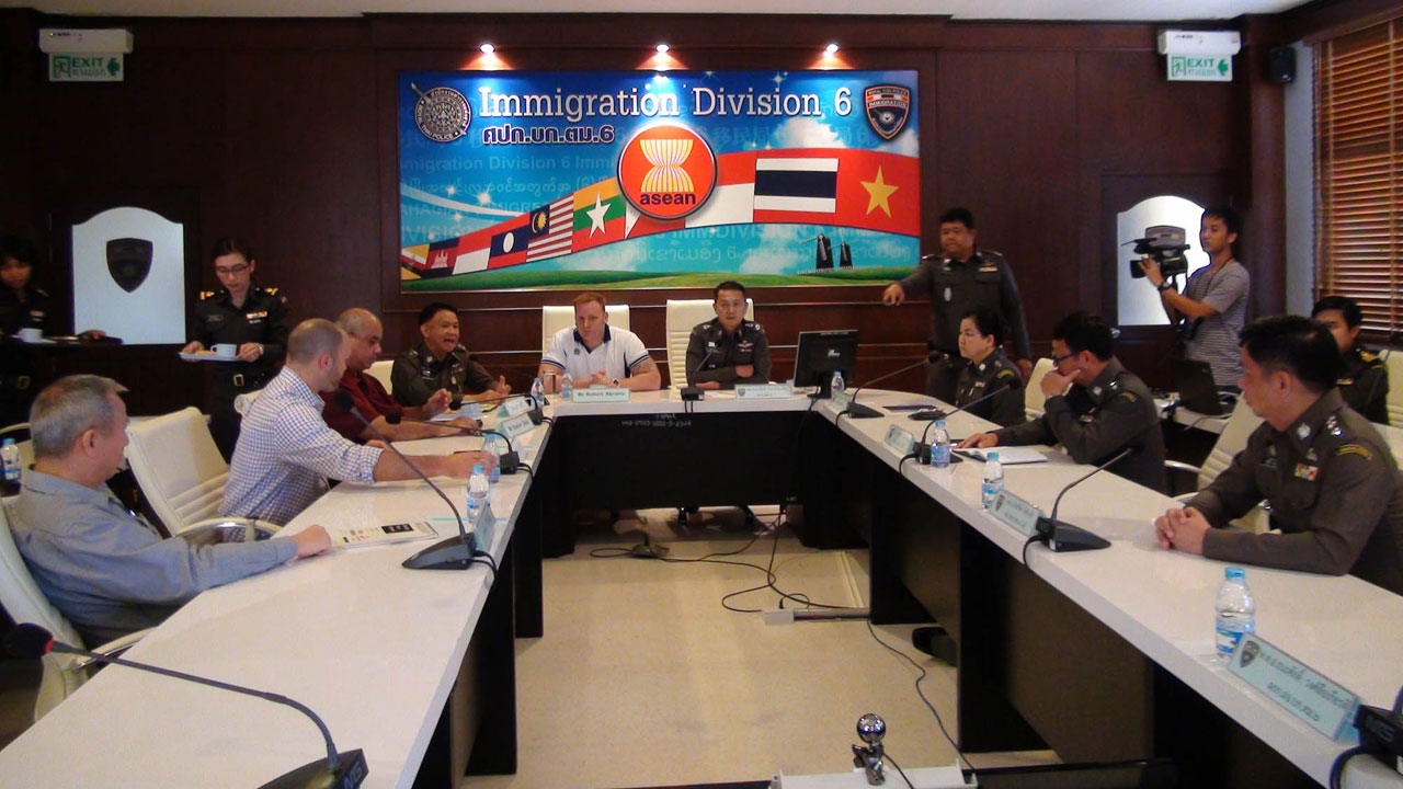 โดยมี พล.ต.ต.ธัชชัย ปิตะนีละบุตร ผบก.ตม.6 บรรยายสรุปข้อมูลสถานการณ์การค้ามนุษย์ ทั้งเส้นทางการอพยพ การปราบปราม การป้องกัน และการช่วยเหลือเหยื่อการค้ามนุษย์ โดยเฉพาะกรณีปัญหาผู้อพยพชาวโรฮีนจา ที่เจ้าหน้าที่ไทยได้ให้การช่วยเหลือ รวมทั้งดำเนินคดีกับเครือข่ายค้ามนุษย์ทั้งหมด คดีขณะนี้อยู่ในกระบวนการชั้นศาล ซึ่งเป็นข้อมูลจริงจากพื้นที่เพื่อให้คณะเจ้าหน้าที่ของสหรัฐฯ ได้รับทราบข้อเท็จจริง นอกเหนือจากข้อมูลของเอ็นจีโอ ซึ่งอาจคลาดเคลื่อนจนนำไปสู่การจัดอันดับการค้ามนุษย์ของไทยยังอยู่ในเทียร์ 3