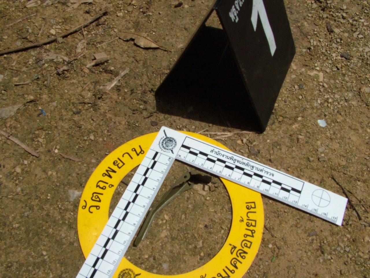 ความคืบหน้าล่าสุด ชุดเก็บกู้วัตถุระเบิดจากภูธรจังหวัดนครศรีธรรมราช และเจ้าหน้าที่พิสูจน์หลักฐานจังหวัดนครศรีธรรมราช ได้เข้ามาตรวจสอบหาหลักฐานวัตถุต่างๆ ในที่เกิดเหตุ จนไปพบกระเดื่องนิรภัย M213 ซึ่งเป็นกระเดื่องของลูกระเบิดขว้างชนิดสังหารแบบ ลข.M79 ชนิดลูกเกลี้ยงตกอยู่ท้ายรถกระบะโตโยต้าสี่ประตูโฟร์วีล สีน้ำเงิน ทะเบียน กค 7794 นครศรีธรรมราช ห่างจากตัวบ้านประมาณ 15.58 เมตร จึงได้เก็บไว้เป็นหลักฐาน นอกจากนี้ยังพบว่าที่ตัวรถด้านขวา ระหว่างล้อหลังยังถูกสะเก็ดระเบิดกระจายมาโดน 1 จุด