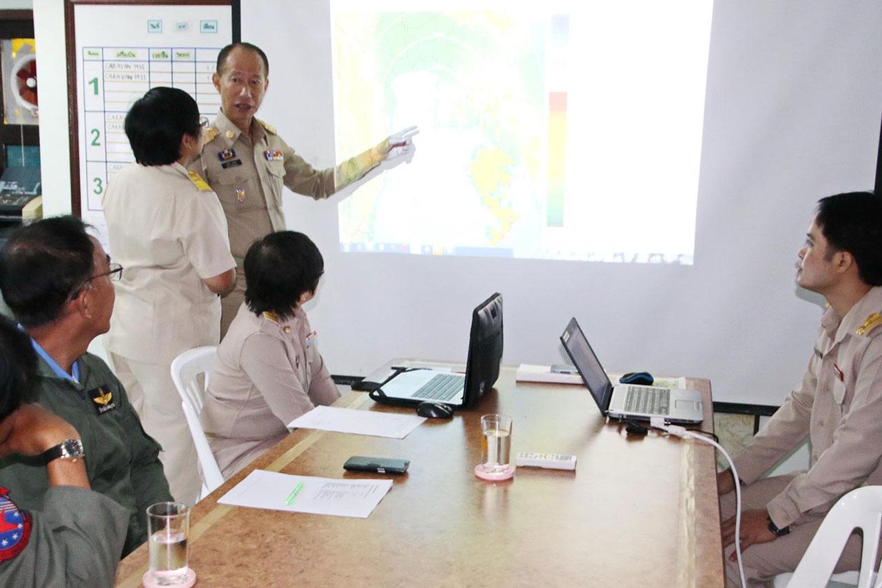 เมื่อวันที่ 17 ส.ค.2558 ที่ผ่านมา นายคมสัน เอกชัย ผู้ว่าราชการจังหวัดชลบุรี พร้อมด้วย นายปริญญา โพธิสัตย์ นายอำเภอสัตหีบ และคณะทำงาน ได้เดินทางเข้ารับฟังบรรยายสรุปถึงสถานการณ์ฝนไม่ตกในพื้นที่จังหวัดชลบุรี และภารกิจทำฝนหลวง เพื่อเพิ่มปริมาณน้ำฝนในอ่างเก็บน้ำในพื้นที่จังหวัดชลบุรี เพื่อรองรับต่อการใช้น้ำ ด้านสาธารณูปโภค ทั้งภาคครัวเรือนและการท่องเที่ยว โดยมี น.ส.วาสนา วงษ์รัตน์ ผู้อำนวยการศูนย์ปฏิบัติการฝนหลวง ภาคตะวันออก เป็นผู้บรรยายสรุปถึงสถานการณ์น้ำ ณ ศูนย์ปฏิบัติการฝนหลวง ภาคตะวันออก กองการบินทหารเรือ กองเรือยุทธการ อ.บ้านฉาง จ.ระยอง