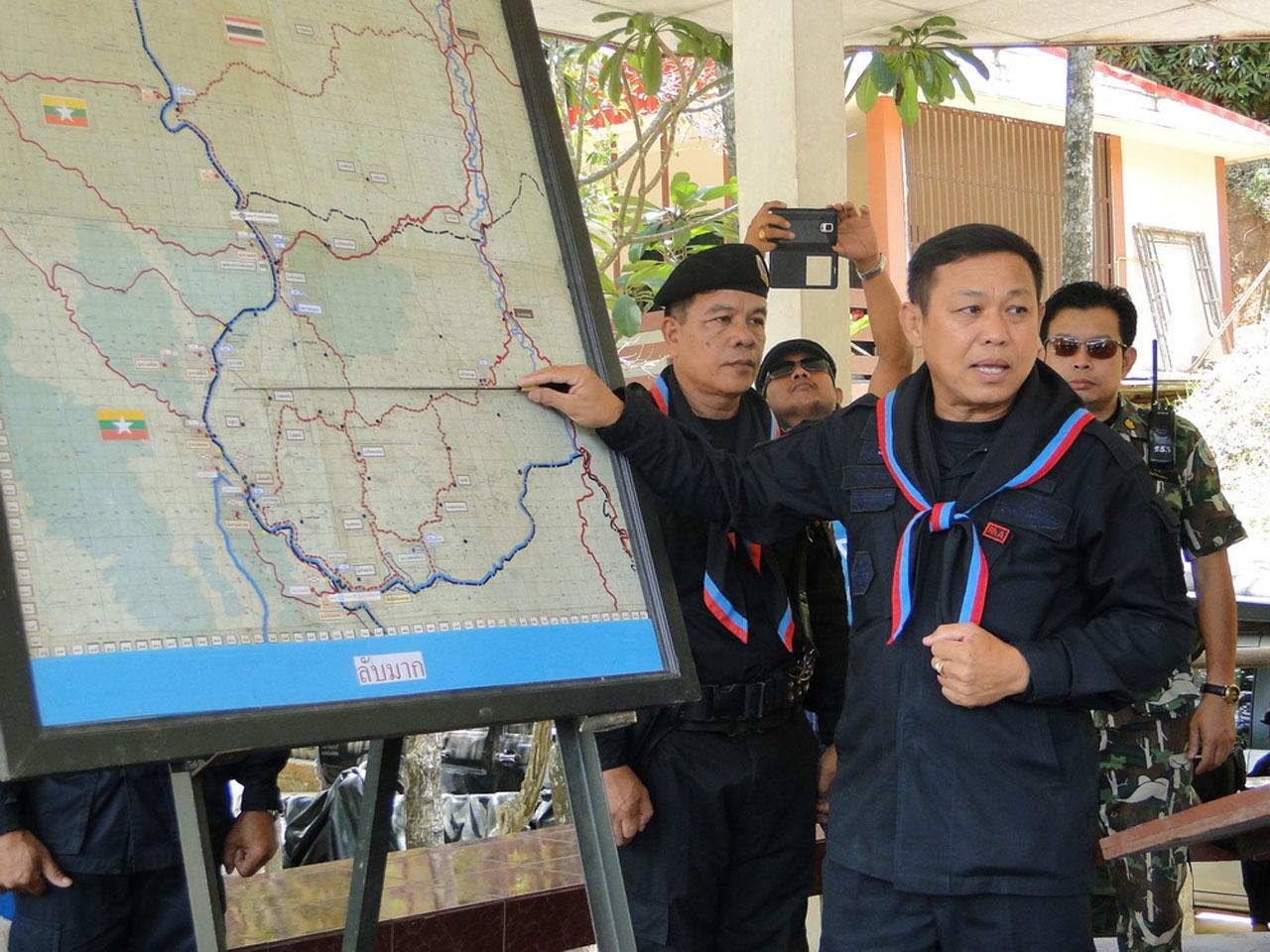 ขณะเดียวกัน เจ้าหน้าที่ ทพ.36 ได้นำเรือเร็วจำนวน 2 ลำ พร้อมเรือหางยาว ของเจ้าหน้าที่อุทยาน สาละวิน 1 ลำ เดินทางไปยังบริเวณจุดที่ตรวจยึดแพไม้สัก 118 ท่อน พร้อมเข้าพบ พันตรีโบ่พอ ผบ.ร้อย กกล.KNU ฐาน 542 แก่งแม่ข่อที่ได้ตรวจยึดแพไม้สัก จากการพูดคุยเบื้องต้น พันตรีโบ่พอ กล่าวว่า ไม้จำนวนดังกล่าวผูกเป็นแพไหลลอยลงมา แต่ไม่ทราบว่าเป็นของใคร ตอนนี้ทางฐาน KNU ได้ใช้ช้างชักลากไม้ดังกล่าวขึ้นไปเก็บไว้ที่บริเวณข้างบนฐานแล้ว และจะนำมาแปรรูปเพื่อสร้างโรงเรือนต่อไป และจากการลาดตระเวน อยากให้ทั้งไทย-เมียนมา นำข้อมูลข่าวสารมาแลกเปลี่ยนกัน