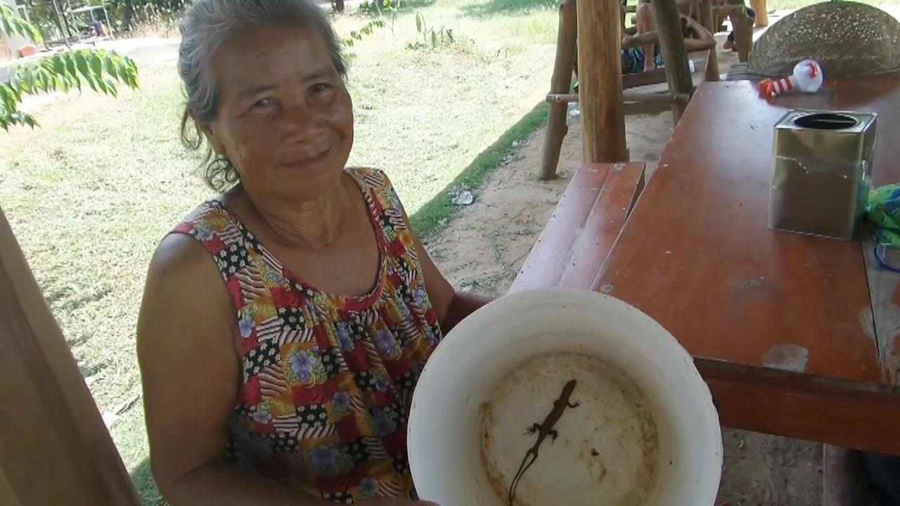แม่เฒ่าวัย72ปีที่อุดรธานีดายหญ้าหน้าบ้าน เจอ‘จิ้งเหลน2หาง’ เชื่องไม่ยอมหนีเลยจับไปปล่อย แต่แปลก พอตกกลางคืนกลับเจอจิ้งเหลนตัวเดิมซุกอยู่ในผ้าเช็ดตัวที่วางบนเตียงนอน เลยนำใส่ถังเลี้ยงเอาไว้ เชื่อมาให้โชคลาภ...