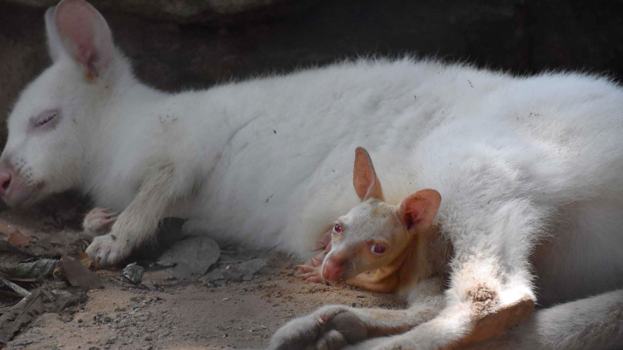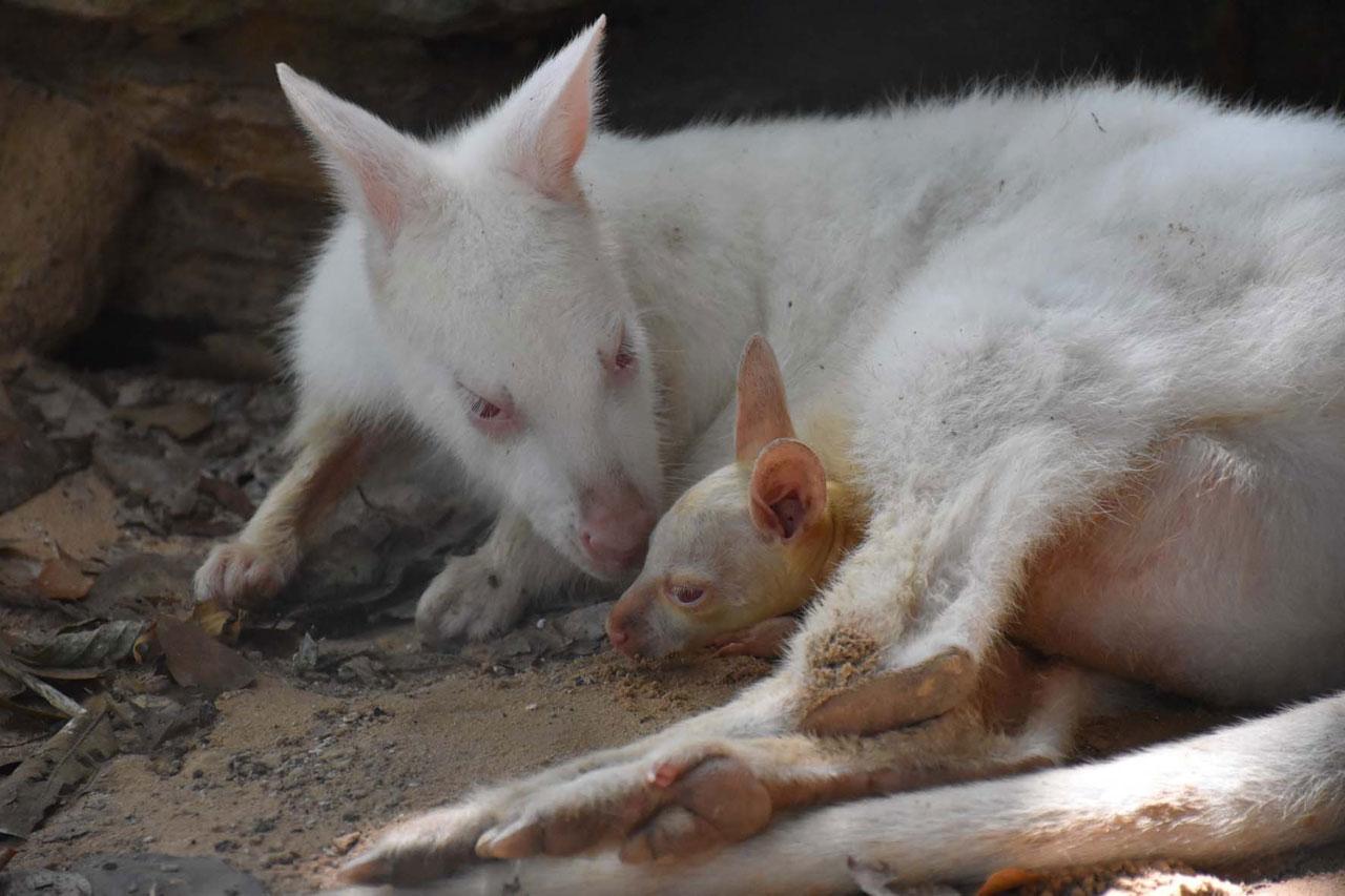 โดยในปีนี้เป็นครั้งที่ 2 ที่สวนสัตว์เขาสวนกวาง จ.ขอนแก่น ได้ลูกวัลลาบี ปัจจุบันสวนสัตว์เขาสวนกวางมีวัลลาบีเผือก เพศผู้ 4 ตัว เพศเมีย 1 ตัว รวมเป็น 5 ตัว ถือว่ามากที่สุดในประเทศ เพราะวัลลาบีเผือก จัดเป็นสัตว์หายาก ที่อยู่ในบัญชีสัตว์ป่าคุ้มครองของออสเตรเลียอีกด้วย ตามสวนสัตว์ของประเทศไทย หาชมวัลลาบีได้ไม่มากนัก สวนสัตว์ที่สังกัดองค์การสวนสัตว์ในพระบรมราชูปถัมภ์ มีอยู่ที่ สวนสัตว์เปิดเขาเขียว จังหวัดชลบุรี จำนวน 1 ตัว เป็นวัลลาบีเผือกที่เกิดจากวัลลาบีธรรมดาที่มีขนสีน้ำตาลอมเทา และที่สวนสัตว์เชียงใหม่ จำนวน 1 ตัว