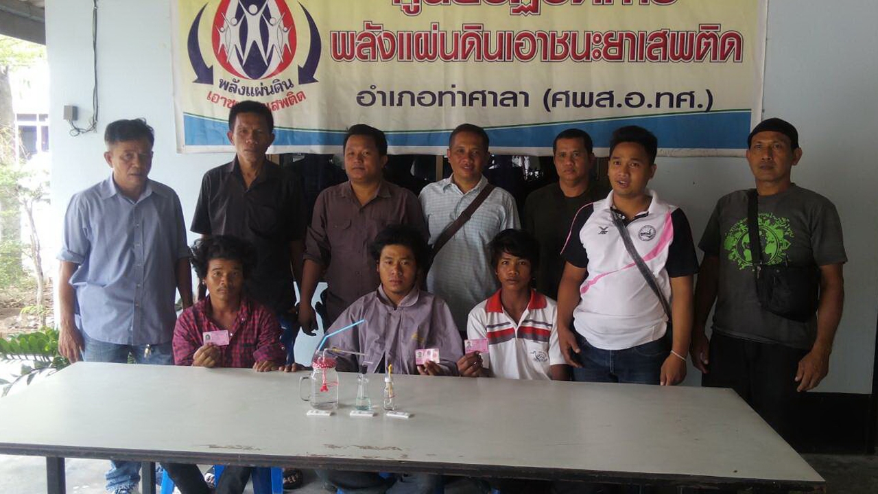 เมื่อไปถึงบริเวณหน้าบ้านเช่า พบ 3 แรงงานต่างด้าว นั่งเสพยาบ้าอย่างเคลิบเคลิ้ม และเมื่อเห็นเจ้าหน้าที่ไปถึงต่างตกใจวิ่งหลบหนีไป ซึ่งเจ้าหน้าที่ได้วิ่งไล่ตามจับกุมแรงงานต่างด้าวมาได้ทั้ง 3 คน พร้อมอุปกรณ์การเสพยาบ้า จึงคุมตัวมาสอบสวนทราบชื่อ นายเท็ด พร อายุ 20 ปี นายตูน กุ้ง อายุ 21 ปี และ นายพร โจม อายุ 20 ปี เป็นแรงงานต่างด้าว สัญชาติเขมร สอบสวนให้การรับสารภาพร่วมกันเสพยาบ้าและเจ้าหน้าที่ตรวจพบปัสสาวะสีม่วง จึงคุมตัวส่ง พงส.สภ.ท่าศาลา จ.นครศรีธรรมราช ดำเนินคดีตามกฎหมายต่อไป