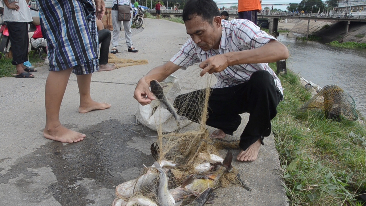 ทั้งนี้ น้ำที่ปล่อยจากคลองชลประทาน ชัยนาท-ป่าสัก ลงสู่แม่น้ำลพบุรี ทำให้ปลาที่อาศัยอยู่ทั้งในแม่น้ำลพบุรี และในคลองชลประทานเกิดอาการน็อกน้ำ เนื่องจากออกซิเจนในน้ำมีน้อย ต้องลอยหัวเพื่อสูดอากาศบนผิวน้ำ ชาวบ้านเห็นต่างรีบนำเครื่องมือจับปลา โดยเฉพาะแห ข่ายดักปลา รวมทั้งการใช้ฉมวกแทงและปืนยิงปลา ซึ่งได้ปลาเป็นจำนวนมากนำไปขาย โดยเฉพาะปลากด ซึ่งมีขนาดใหญ่ ขายในกิโลกรัมละ 100 บาทขึ้นไป สร้างรายได้ให้กับชาวบ้านอย่างเป็นกอบเป็นกำ