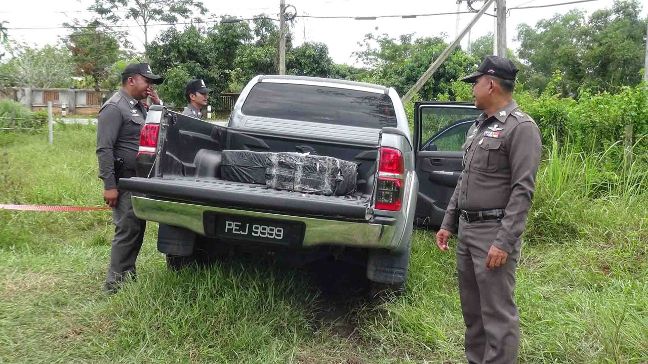 กระบะแหกด่านจุดตรวจ เสียหลักตกข้างทาง คนในรถเป็นชาย 2 คน ทิ้งรถหลบหนีไป ตรวจสอบในรถพบกัญชาแห้งอัดแท่งใส่ถุงดำ 8 แพ็ก น้ำหนักประมาณ 320 กก. ซุกซ่อนอยู่ คาด ผู้หลบหนีเป็นชาวมาเลเซียไม่ชำนาญเส้นทาง ตำรวจเร่งติดตามตัว มาดำเนินคดี
