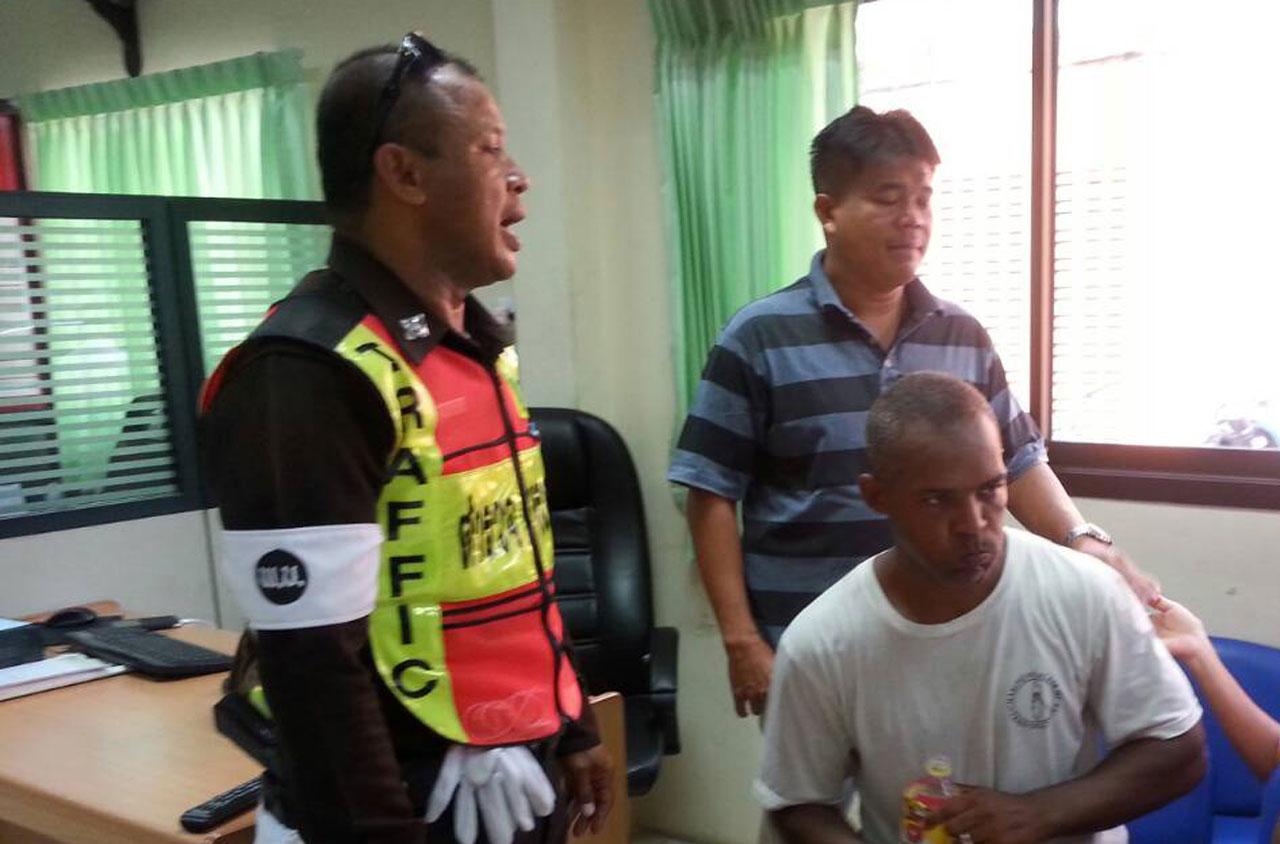 นายเฟรดดริกให้การว่า ตนได้มาพักอาศัยอยู่กับภรรยาชาวไทยและลูกสาวที่ชะอำ โดยไปๆ มาๆ อยู่เป็นเวลาเกือบ 10 ปีแล้ว ซึ่งในเช้าวันนี้ ตนพาครอบครัวขี่รถจักรยานยนต์ ฮอนด้าเวฟ สีแดง หมายเลขทะเบียน กรต 462 เพชรบุรี จากบ้านพักมาออกกำลังกายที่บริเวณสวนสุขภาพ หน้าสำนักงานเทศบาลเมืองชะอำ จากนั้นได้ขี่รถกลับบ้าน แต่ในระหว่างทางที่ขี่ไปตามถนนสายหลัง บริษัท ฮอนด้า ชะอำ สวนกับรถยนต์โตโยต้า ฟอร์จูนเนอร์ สีดำ หมายเลขทะเบียน กฉ 4944 เพชรบุรี ที่มีนายไตรจักรเป็นคนขับ เมื่อสวนทางกัน รถคันดังกล่าวได้ขับเบียดรถของตนที่มีภรรยากับลูกสาววัย 3 ขวบครึ่งซ้อนท้ายอยู่ จนเกือบจะเกิดอุบัติเหตุ ก่อนจะแล่นเลยไป เหมือนไม่มีอะไรเกิดขึ้น