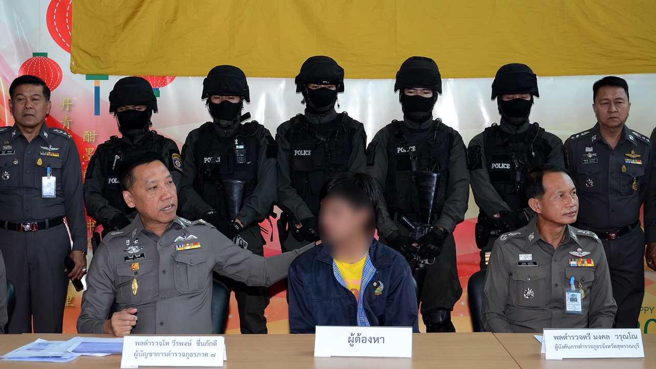 เมื่อวันที่ 24 ส.ค. พล.ต.ท.วีรพงษ์ ชื่นภักดี ผบช.ภ.7 พล.ต.ต.สุรชัย ควรเดชะคุปต์ รอง ผบช.ภ.7 พล.ต.สมบูรณ์ ดีรอด ผบ.จทบ.กจ. พล.ต.ต.มงคล วรุณโณ ผบก.ภ.จว.สุพรรณบุรี พ.ต.อ.ชัยรัตน์ ทิพยจันทร์ รอง ผบก. พ.ต.อ.สุทธิ พวงพิกุล พ.ต.อ.อนุสรณ์ วนาปกรณ์ รอง ผบก. พ.อ.เรืองศักดิ์ อรรคทิมากูล รอง ผบ.จ.ทบ.กจ.เจ้าหน้าที่ตำรวจ กก.สส.ภ.จ.สุพรรณบุรี สภ.เมือง และเจ้าหน้าที่ทหาร จ.ทบ.กจ. ร่วมกันแถลงข่าวจับกุมวัยรุ่นอายุ 19 ปี ชาว อ.สามชุก จ.สุพรรณบุรี ในข้อหาแกล้งบอกเล่าความเท็จให้เลื่องลือ เป็นเหตุให้ประชาชนตื่นตกใจและนำเข้าสู่ระบบคอมพิวเตอร์อันเป็นเท็จ โดยประการที่น่าจะเกิดความเสียหายต่อความมั่นคงของประเทศ หรือก่อให้เกิดความตื่นตระหนกแก่ประชาชน ตามหมายจับศาลจังหวัดสุพรรณบุรี ที่ 307/2558 ลงวันที่ 23 ส.ค. 2558 เป็นความผิดตาม พ.ร.บ.ว่าด้วยการกระทำความผิดเกี่ยวกับคอมพิวเตอร์ พ.ศ.2550 มาตรา 14 (2) ซึ่งมีอัตราโทษจำคุกไม่เกิน 5 ปี ปรับไม่เกิน 100,000 บาท หรือทั้งจำทั้งปรับ