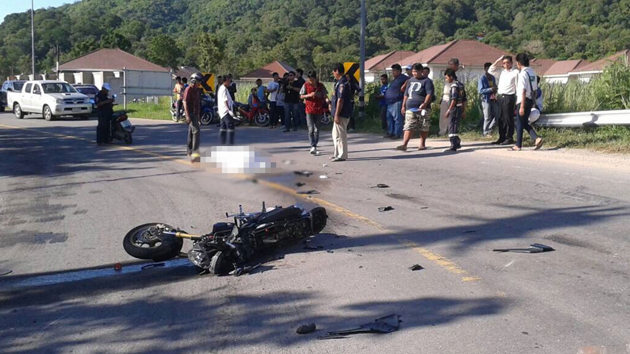 เมื่อเวลา 16.00 น. วันที่ 24 ส.ค. พ.ต.ท.สุทิน นิลแย้ม พงส.สภ.ศรีราชา จ.ชลบุรี รับแจ้งเหตุรถจักรยานยนต์ชนกับรถพ่วงบรรทุกหิน มีผู้เสียชีวิต บนเส้นทางเขาแร้ง หมู่ 6 ต.บางพระ อ.ศรีราชา จึงไปตรวจสอบ พร้อมหน่วยกู้ภัยสว่างประทีปศรีราชา