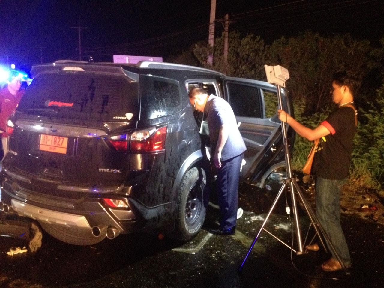 ที่เกิดบริเวณ เป็นถนน สายเสนา-อยุธยา ห่างจากป้อมตำรวจ สภ.พระขาว ประมาณ 300 เมตร ช่องทางมุ่งหน้า อ.เสนา พบรถยนต์ยี่ห้ออีซูซุ มิวเอ็กซ์ สีดำ ทะเบียนป้ายแดง ก. 3827 ชลบุรี ชนกับรถยนต์ปิกอัพยี่ห้อ อีซูซุ ดีแมกซ์ สีเทา ทะเบียน บฉ 8260 พระนครศรีอยุธยา ภายในรถยนต์ปิ๊กอัพ มีผู้เสียชีวิตติดภายใน ตรงที่นั่งคนขับ 1 ราย คือ นายยงยุทธ ไตรจิตร อายุ 38 ปี บ้านอยู่ 18 ม 2 ต.น้ำเต้า อ.บางบาล จ.พระนครศรีอยุธยา คนขับ ส่วนรถยนต์ ยี่ห้อ อีซูซูมิวเอ็กซ์ ป้ายแดง พบศพ นางรัชนี ทรัพย์มาก 60 ปี เสียชีวิตอยู่ภายในรถเบาะนั่งข้างซ้าย และมีผู้บาดเจ็บนำส่ง รพ.พระนครศรีอยุธยา 3 ราย คือ นายพรพิษณุ ฉุนสนิท อายุ 34 ปี บ้านอยู่ 46/2 ม 5 ต.สามตุ่ม อ.เสนา จ.พระนครศรีอยุธยา เป็นคนขับ น.ส.พรทิพย์ สังขวรรณะ 48 ปี และนางสะอิ้ง ฉุนสนิท 54 ปี และนำส่งรพ.เสนา อีก 3 ราย ได้แก่ หญิงไม่ทราบชื่อ อายุ 50 ปี นายชาลี ฉุนสนิท 51 ปี และ ด.ช.ณัฐวัฒน์ โปร่งใจ 10 ปี ทั้งหมดมีอาการปลอดภัย