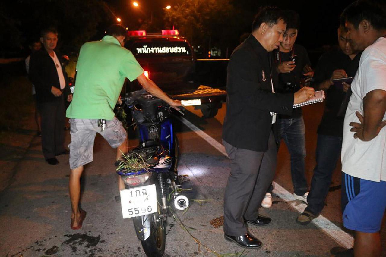 จากการสอบถาม นายมัชฌิมา สอนดิษฐ์ อายุ 56 ปี คนเห็นเหตุการณ์ ทราบว่า ผู้ตายกำลังขี่จยย. มาตามถนนด้วยความเร็ว ก่อนจะได้ยินเสียงดัง คล้ายอาการลูกสูบติด ทำให้ล้อตายกะทันหัน จึงตีลังกาฟาดกระแทกกับต้นคูณริมถนนอย่างแรง และไถลไปจนตกข้างทางดังกล่าว ด้านเจ้าหน้าที่ตำรวจ ได้ทำบันทึกที่เกิดเหตุ ก่อนจะนำรถจยย. ไปตรวจสอบ และสอบสวนผู้ที่พบเห็นเหตุการณ์ เพื่อหาสาเหตุการเกิดอุบัติเหตุในครั้งนี้ พร้อมมอบศพให้ญาติรับไปดำเนินพิธีทางศาสนา ต่อไป
