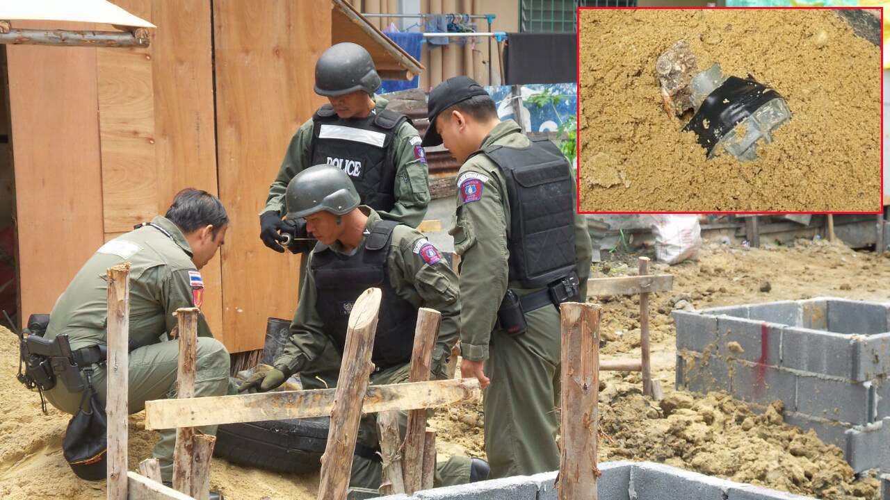 ตำรวจกลุ่มงานเก็บกู้และตรวจพิสูจน์วัตถุระเบิด บก.สปพ. เก็บกู้ระเบิดชนิด MK- 2 (รูปเล็กบน) ที่คนงานก่อสร้างอพาร์ตเมนต์ ซอยสุขุมวิท 81 ขุดหลุมเพื่อลงเสาเข็มพบระเบิดถูกฝังอยู่ในดินสภาพเก่าขึ้นสนิม แต่ยังใช้งานได้.