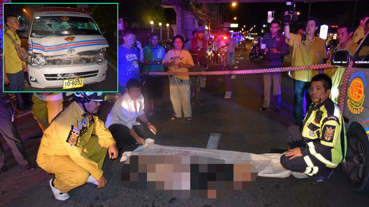 จากการสอบถามผู้โดยสารภายในรถ 3 คน เปิดเผยว่า ขึ้นรถตู้มาจากกรุงเทพฯเพื่อไปบางแสน เมื่อมาถึงที่เกิดเหตุ คนขับรถตู้ขับรถด้วยความเร็วสูงแข่งกับรถตู้อีกคันเพื่อแย่งผู้โดยสาร เป็นจังหวะเดียวกับผู้ตายเดินข้ามถนน ทำให้คนขับเบรกไม่ทันพุ่งชนอย่างเต็มแรง ร่างฟาดกระจกหน้าจนแตก โดยร่างเข้าไปติดใต้ท้องรถและถูกลากม้วนกลิ้งไปกับถนนประมาณ 40 เมตร กระทั่งร่างหลุดจากใต้ท้องรถ หลังเกิดเหตุคนขับรถจอดรถและหลบหนีไป