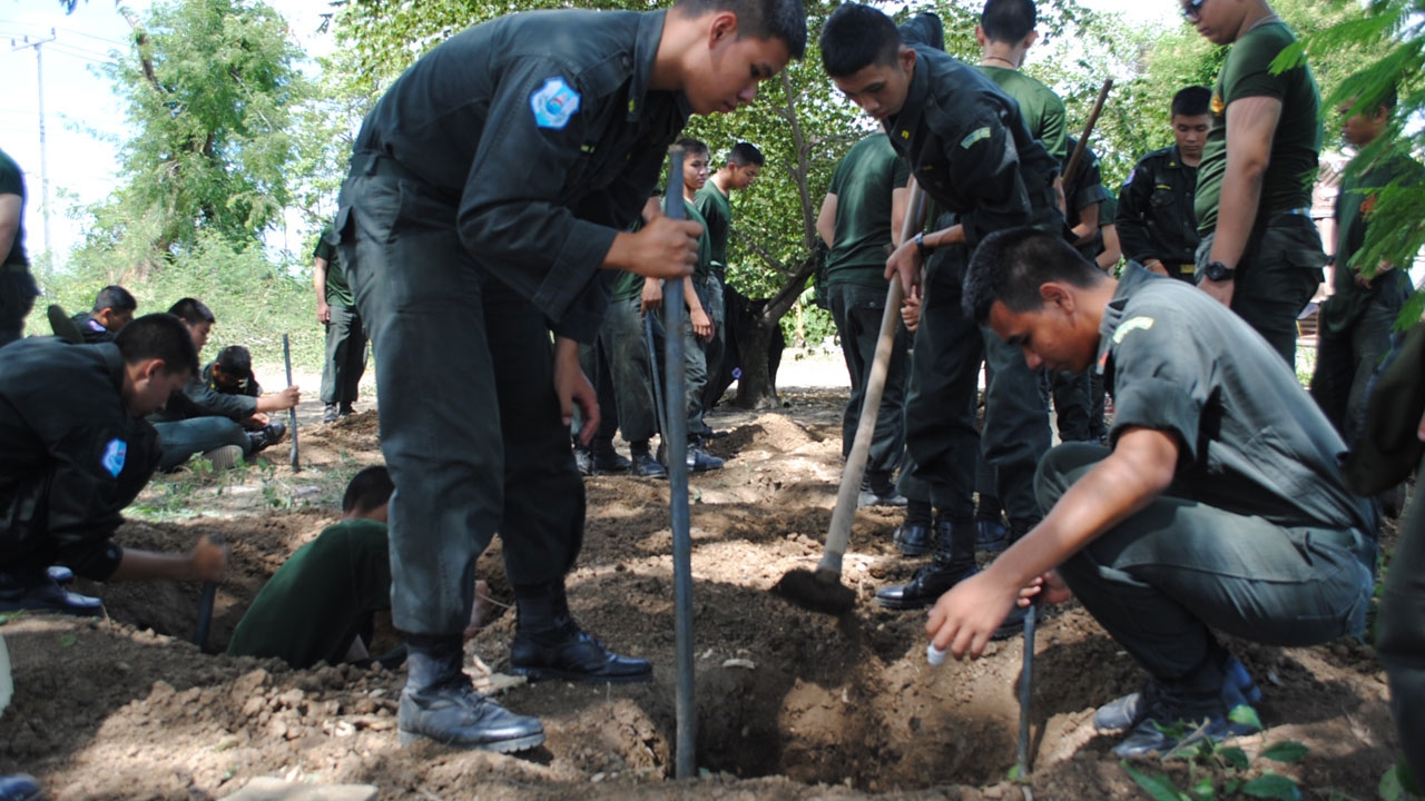 วันที่ 25 ส.ค. ผู้สื่อข่าวรายงานว่า พบนักศึกษาวิชาทหารระดับ ชั้น ม.6 โรงเรียนสวรรค์อนันต์วิทยาคม โรงเรียนเทศบาลเมืองสวรรคโลก โรงเรียนสวรรคโลกประชาสรรค์ อ.สวรรคโลก จ.สุโขทัย กว่า 80 คน นำอุปกรณ์ไม่ว่าจะเป็นจอบ เสียม และเครื่องตัดหญ้า ไปช่วยกันตัดหญ้า เตรียมสร้างบ้านให้กับ นายประยูร ถุงเงิน อายุ 66 ปี และ นางประเสริฐศรี ถุงเงิน อายุ 70 ปี สองตายายที่อาศัยอยู่ในกระท่อมปลายนา ไม่มีทั้งไฟฟ้า น้ำประปา และห้องน้ำใช้ บริเวณที่ดินของเพื่อนนายประยูร หมู่ 7 ต.นาทุ่ง อ.สวรรคโลก เป็นเวลากว่า 3 ปี หลังจากที่นักศึกษาวิชาทหารกลุ่มนี้ ได้ร่วมกันเล่นดนตรีเปิดหมวก เพื่อรับบริจาคเงินมาสร้างบ้านให้สองตายาย ซึ่งก็มีผู้ร่วมบริจาคเงินช่วยเหลือเป็นจำนวนมาก